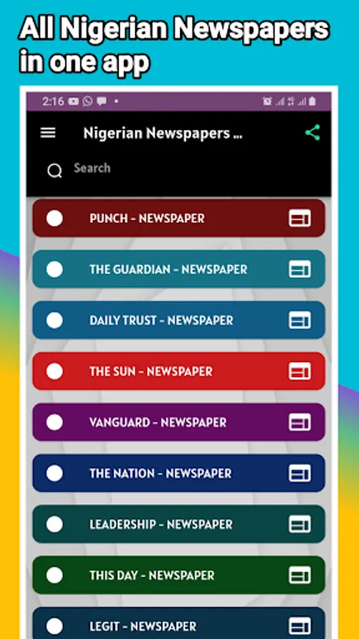 The app contains the following all Nigerian newspapers: