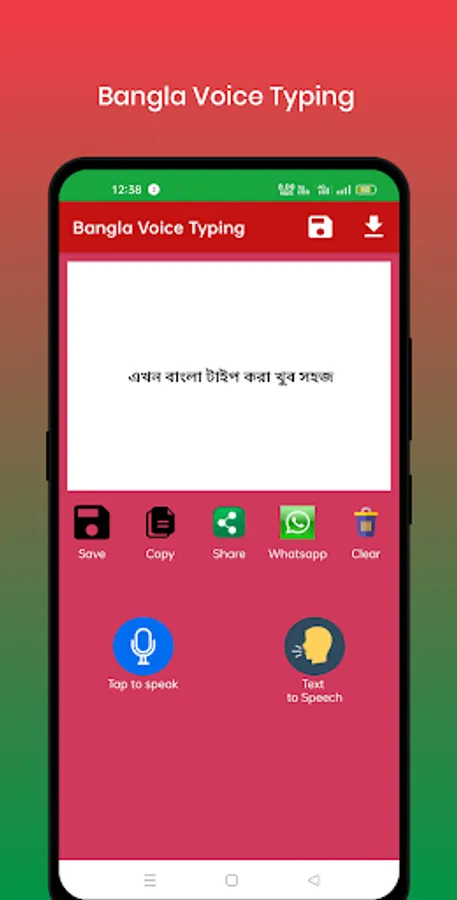 Leave the ancient keyboard typing application and move to Bangla voice typing application. This app will reduce your effort to type it. Just speak , the app will convert it to Bangla text very fast.