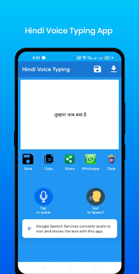 Leave the ancient keyboard typing application and move to Hindi voice typing application. This app will reduce your effort to type it. Just speak , the app will convert it to Hindi text very fast.