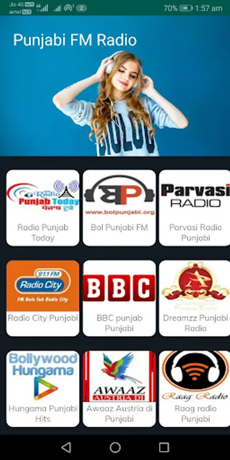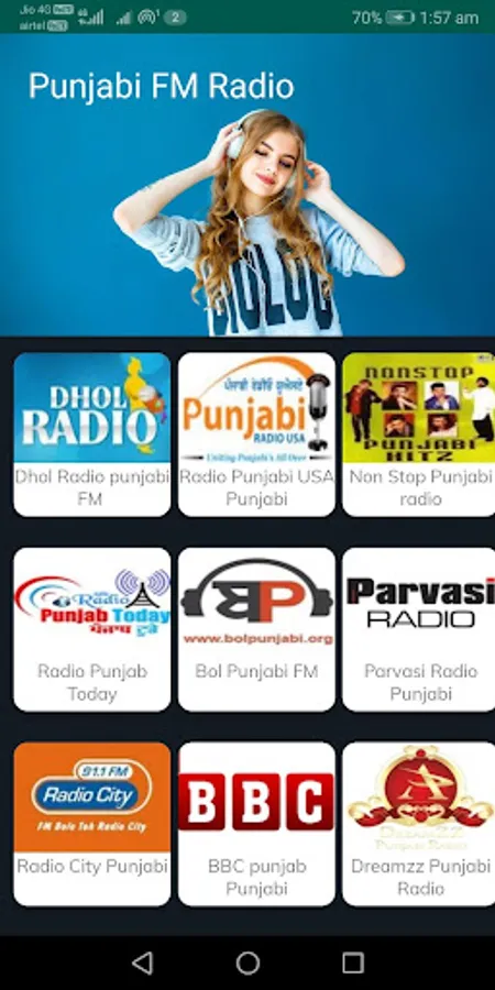 Punjabi Radio app helps you to listen more than 100 FM radio station from anywhere in the world. Now listen you native FM radio by using our app for absolutely free. Now you can listen FM radio without using head phones.