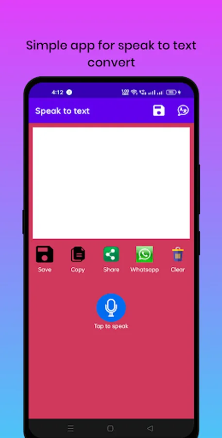 Speech to Text application helps you to make your messaging more easier and faster without typing any alphabet.
