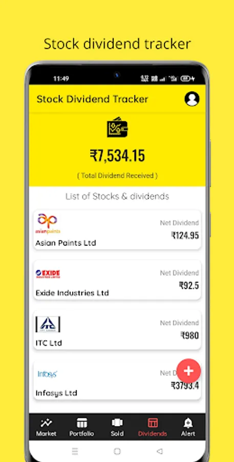 Stock dividend tracker app will send you the dividend issue notifications of each stocks issue in respective days, so the user can add the stock count and dividends per share for the stocks in the app.