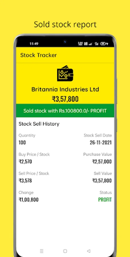 * Sold stock dashboard