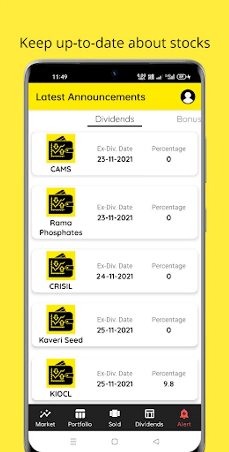 * Upcoming announcements of Bonus, Dividend and Split
