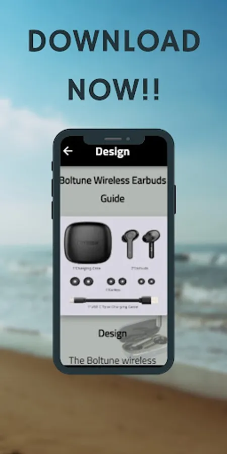 The Boltune Wireless Earbuds Guide app is talking about The Boltune earbuds design being lightweight, and comfortable. They come with a charging case that provides up to 36 hours of playtime and can be charged via USB-C.the Boltune Wireless Earbuds Guide app also talk about The earbuds themselves feature touch controls for easy navigation and a secure fit for active use.