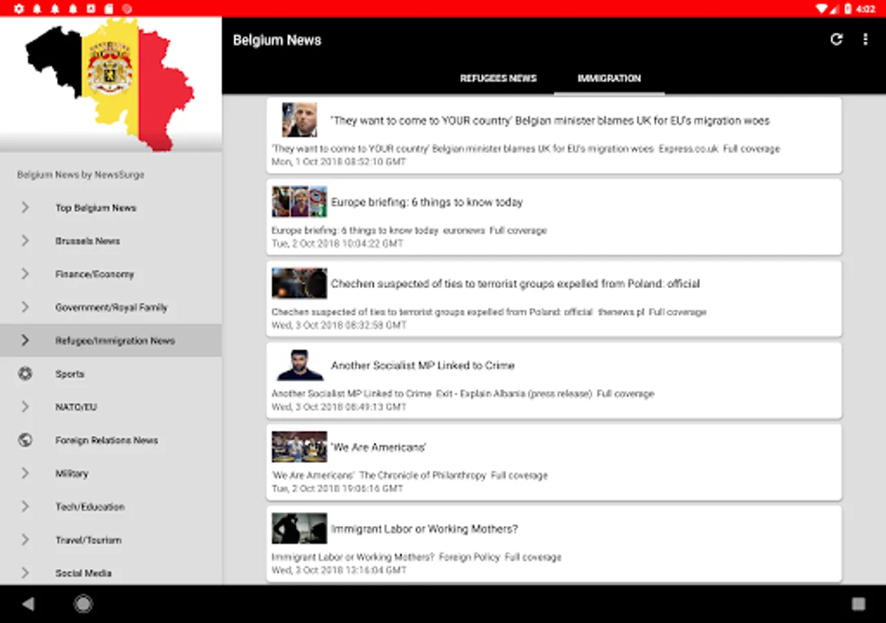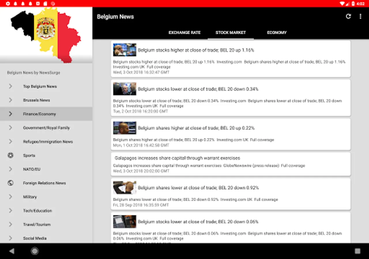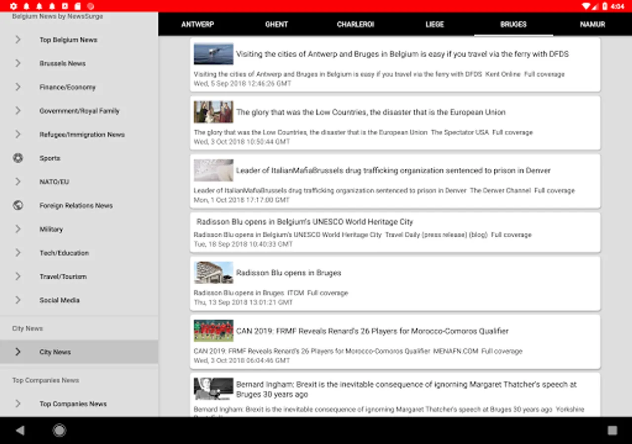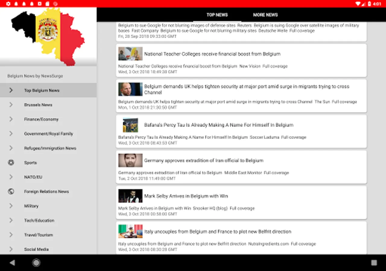 Latest Belgium News in English today at your fingertips, with notifications support! Get breaking Belgium & Brussels News including updates on the economy, immigration/refugees situation, technology, elections, the Belgian royal family, football and much more. Individual news sections dedicated to more cities including Antwerp, Ghent plus others will keep you informed about local news happenings. Stay up-to-date with corporate news from the largest Belgian companies including Anheuser Busch, KBC, Ageas and more.