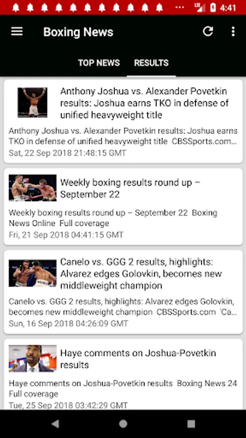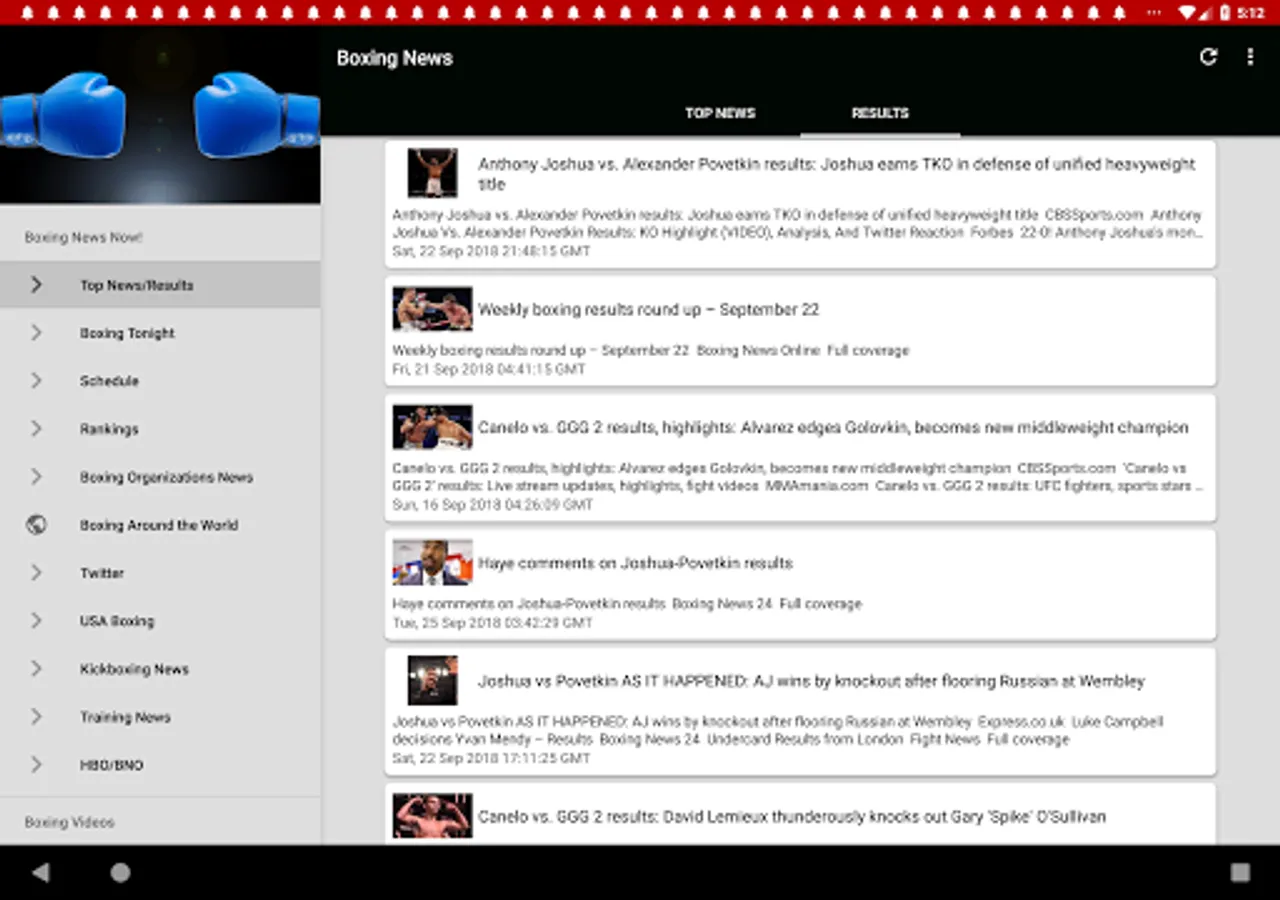 Boxing News Now instantly at your fingertips, with notifications support! Get the latest Boxing Results, Schedule & training plus much more. Individual news sections dedicated women's boxing, kickboxing, USA boxing plus coverage of the sport around the globe are included. Watch entertaining videos on boxing highlights and educational ones on training/workouts.
