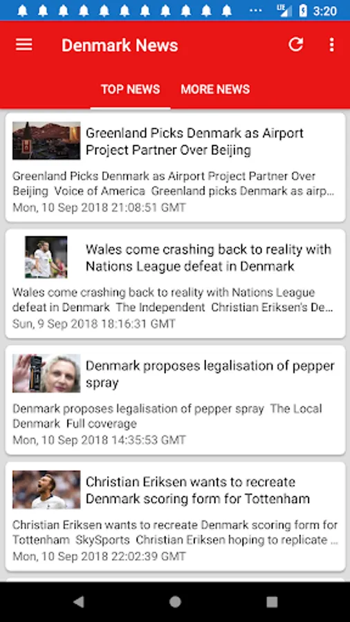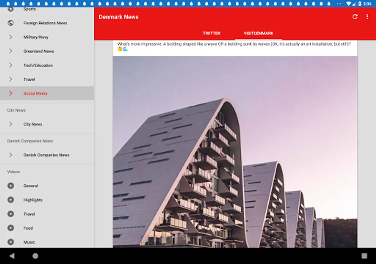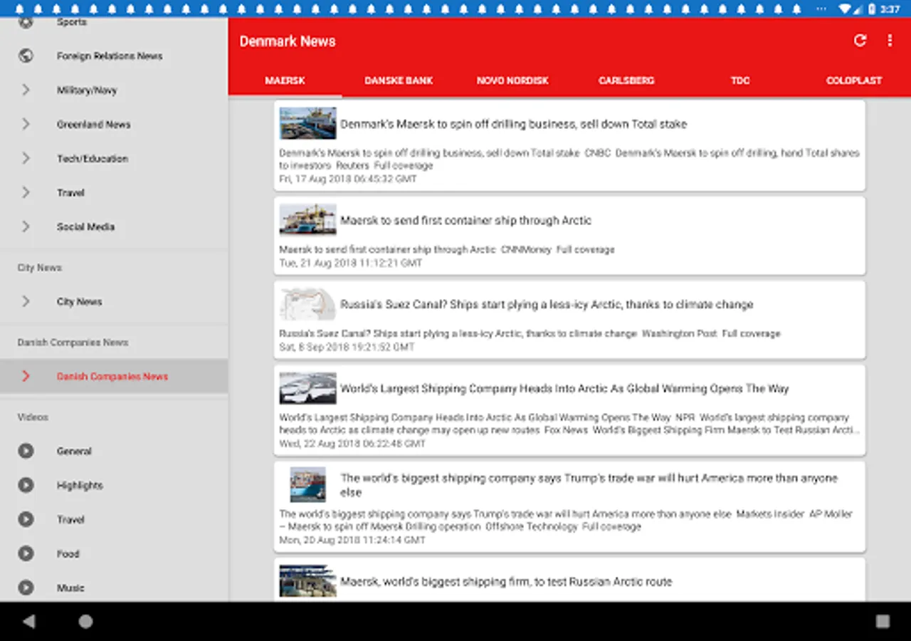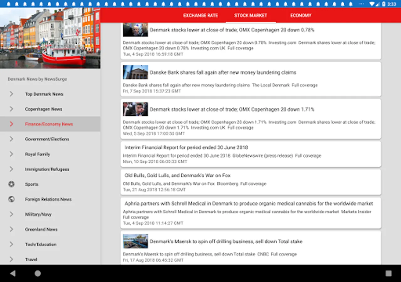 Latest Denmark News in English today at your fingertips, with notifications support (You can change notification preferences in the Settings section of your Android Device)! Get breaking Denmark news including updates on the economy, immigration/refugees situation, travel, sports technology, plus much more. Individual news sections dedicated to top cities Copenhagen, Aarhus, Odense and others will keep you informed about local news happenings.