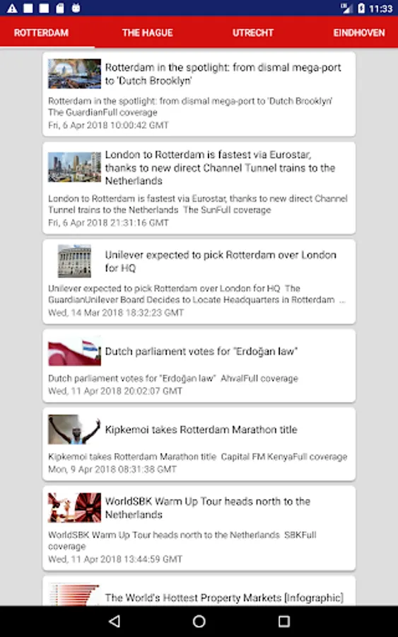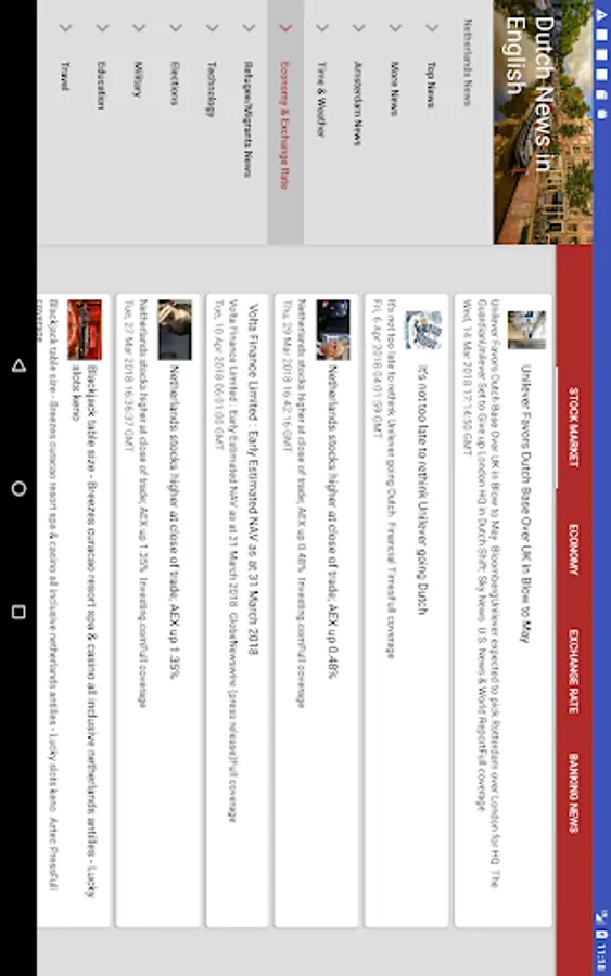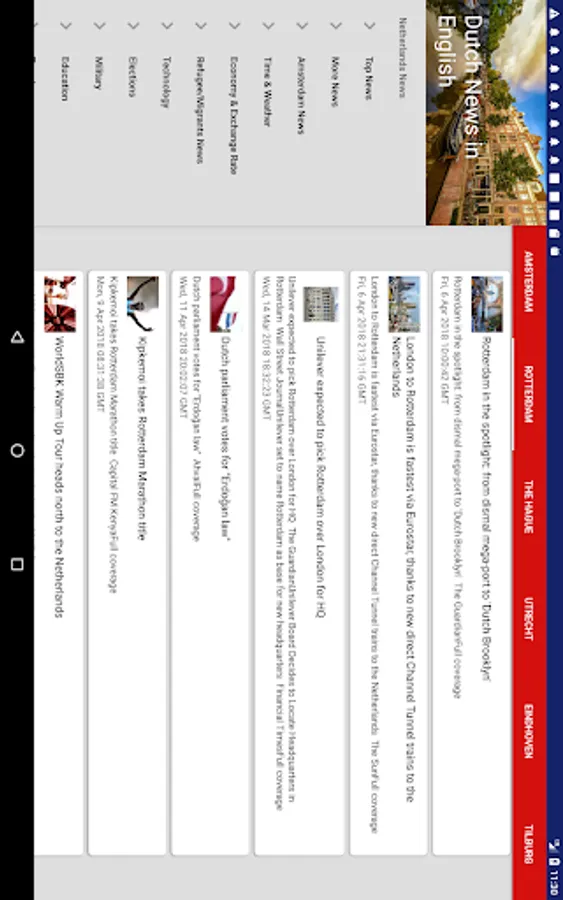 Breaking Dutch News in English Today for Netherlands/Amsterdam at your fingertips, with notifications support! Get the latest Netherlands News including updates on its economy, the migrant/refugee situation, elections, education, banking, technology and more. Individual news sections dedicated to top Dutch cities Amsterdam, Rotterdam, The Hague, Utrecht and others will keep you informed about local news there. There is also a business section to keep you up to date on the top Dutch companies Royal Dutch Shell, Unilever, Airbus, Heineken, Philips and others.