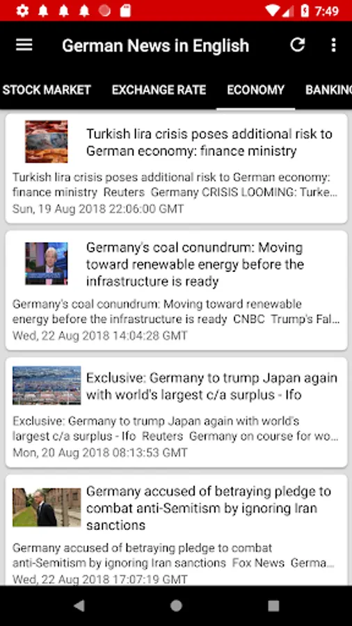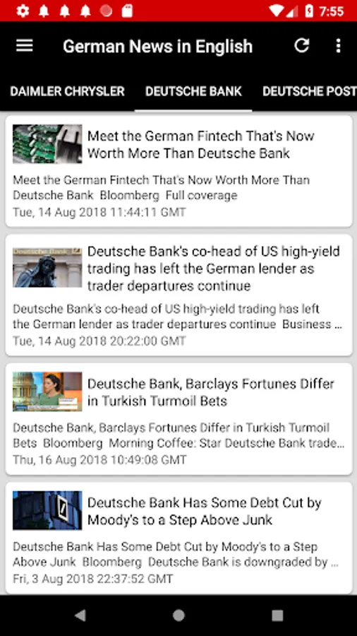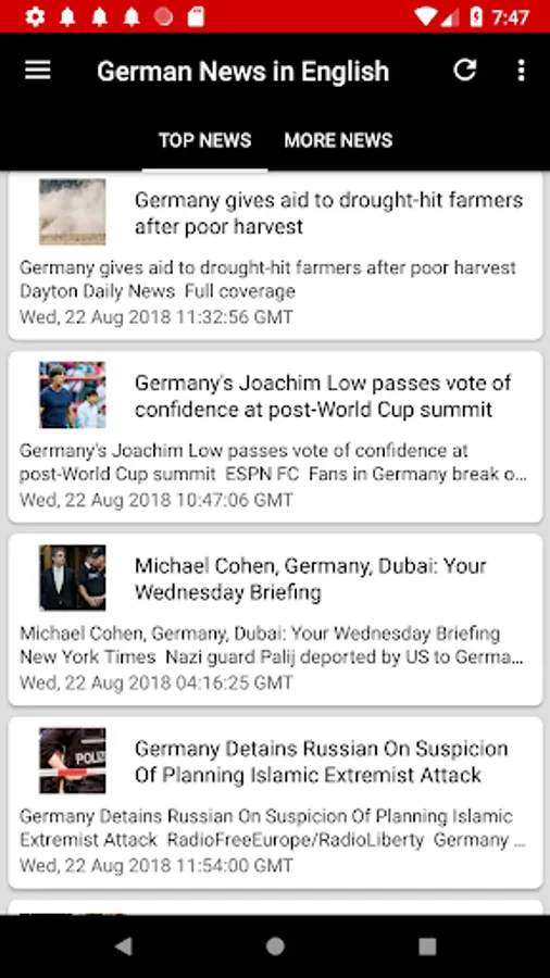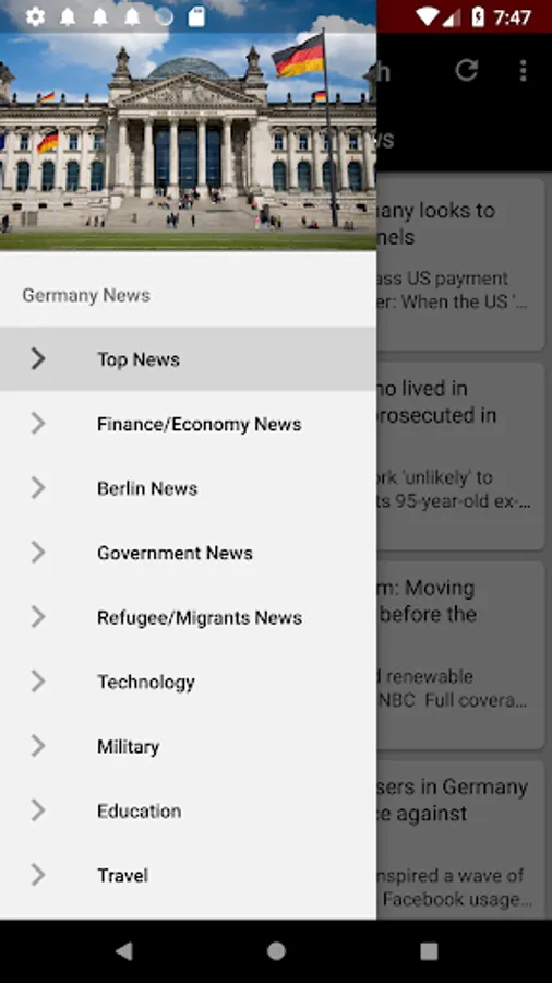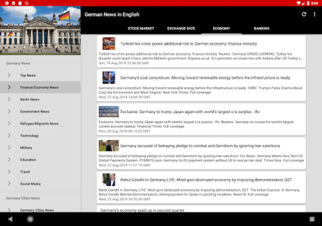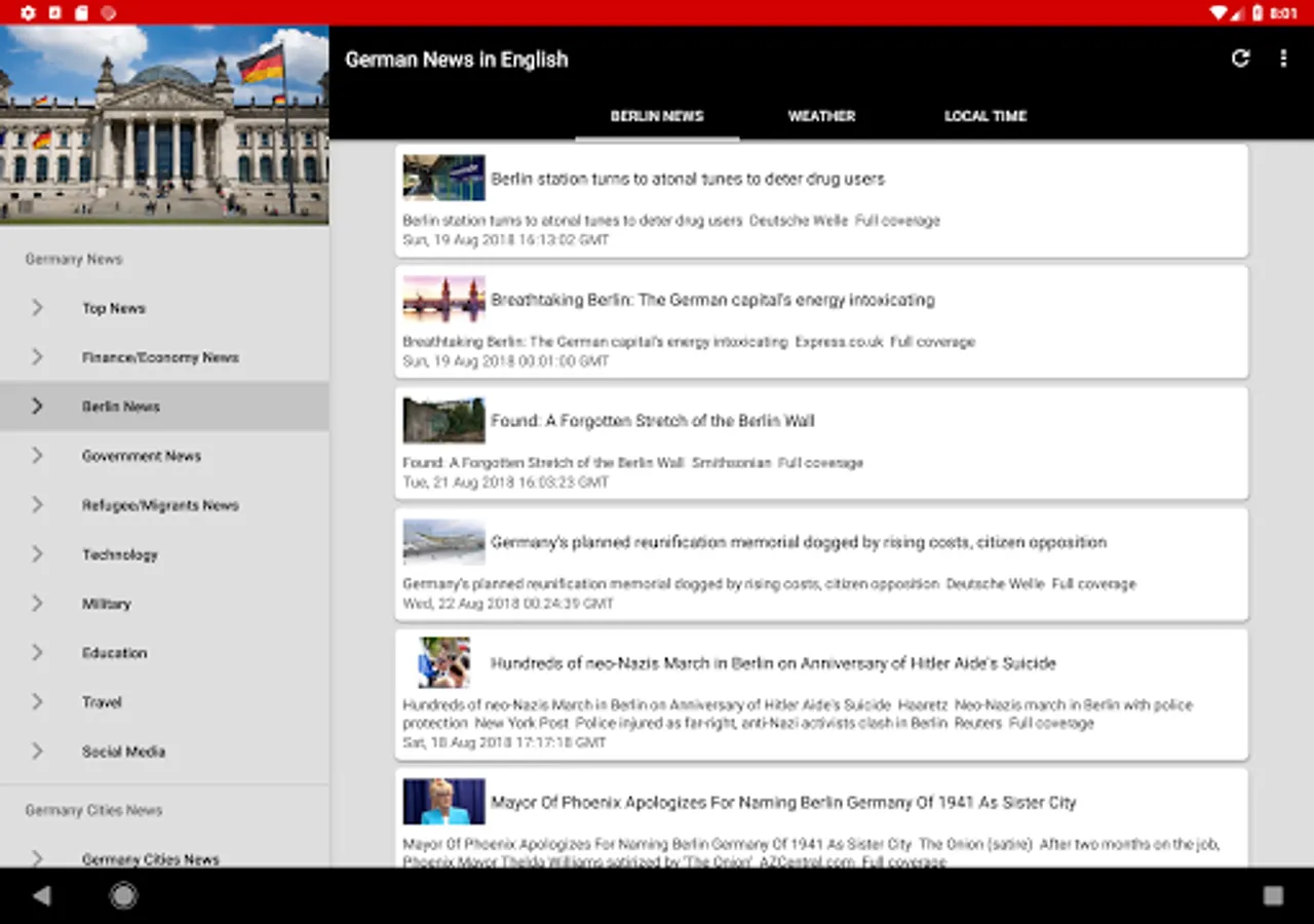 Breaking German News in English Today at your fingertips, with notifications support! Get the latest Germany News including updates on the refugees/migrants situation, sports, economy, education, banking, technology, elections, NATO/military, international relations and more. Individual news sections dedicated to top cities Berlin, Hamburg, Munich, Cologne, Frankfurt and more will keep you informed about local news happenings there. There is also a business section to keep you up to date on the top German companies including Allianz, Daimler Chrysler, Siemens, BMW, BASF, Deutsche Bank and others.