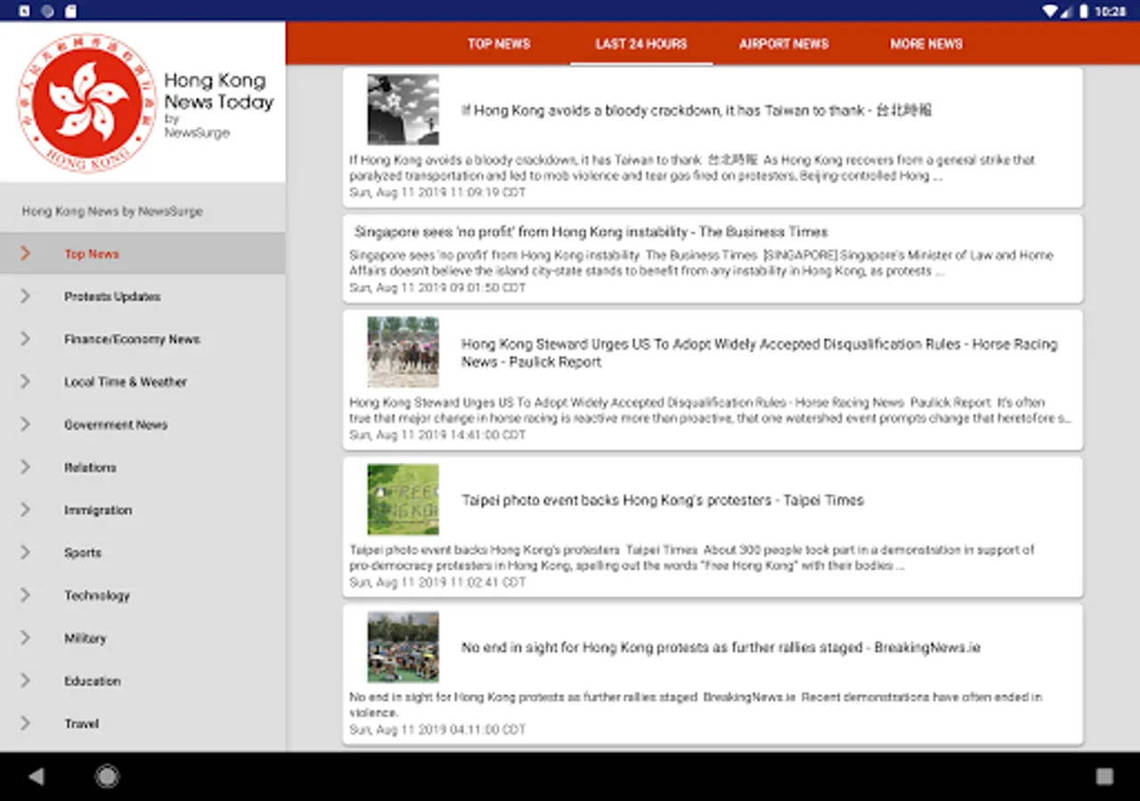 Breaking Hong Kong News in English Today at your fingertips, with notifications support! Get the latest Hong Kong News including updates on its relationship with China, protests, its economy, airport, Disneyland Hong Kong, sports news, technology and much more. There is also a business section to keep you up to date on the top Hong Kong companies China Mobile, CNOOC, Cheung Kong, AIA Group, China Unicom, Sun Hung Kai plus others.