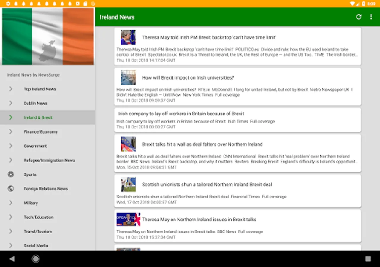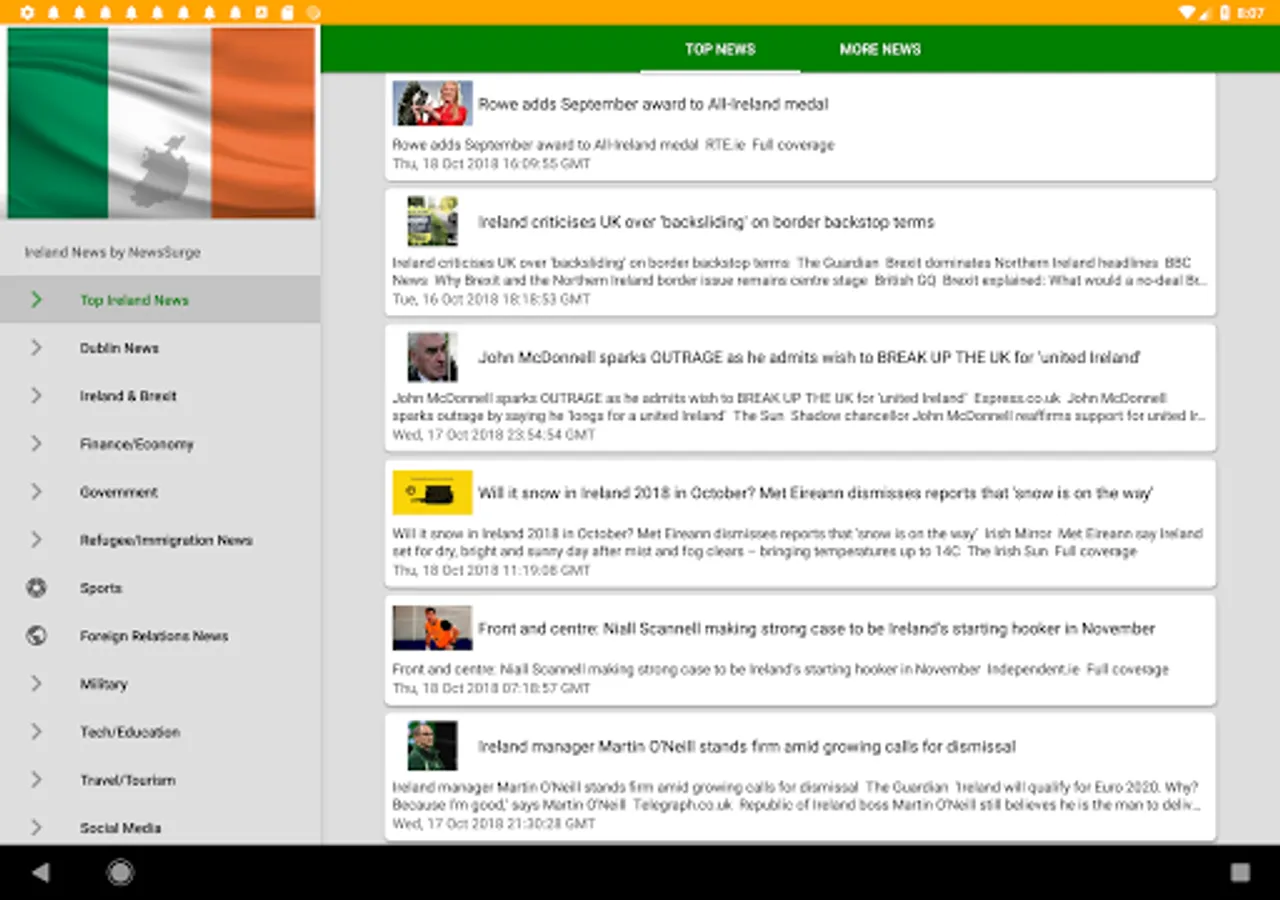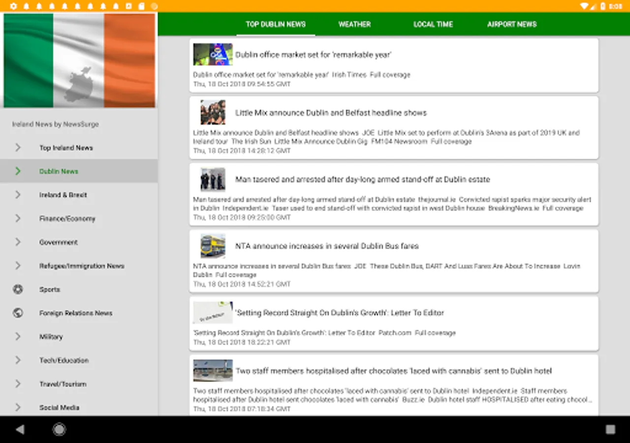 Irish News today at your fingertips, with notifications support! Get the latest breaking Ireland News including updates on the economy, the effect of Brexit, unification talk, immigrations/refugees situation, travel, sports plus much more. Individual news sections dedicated to top cities Dublin, Cork, Limerick and others will keep you informed about local news happenings.
