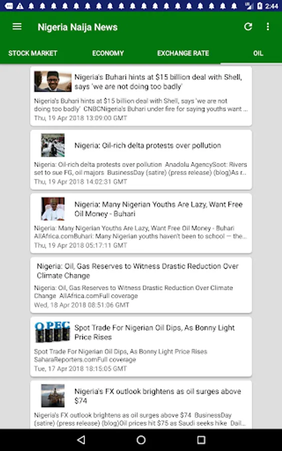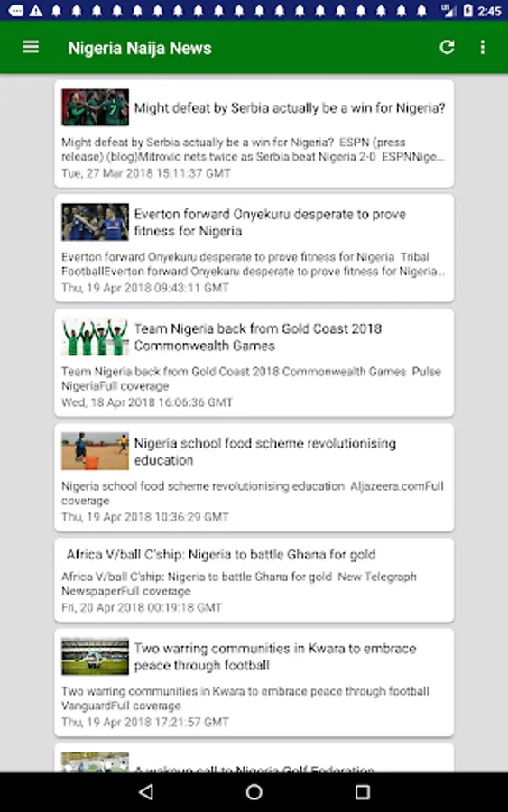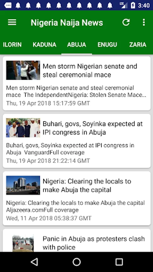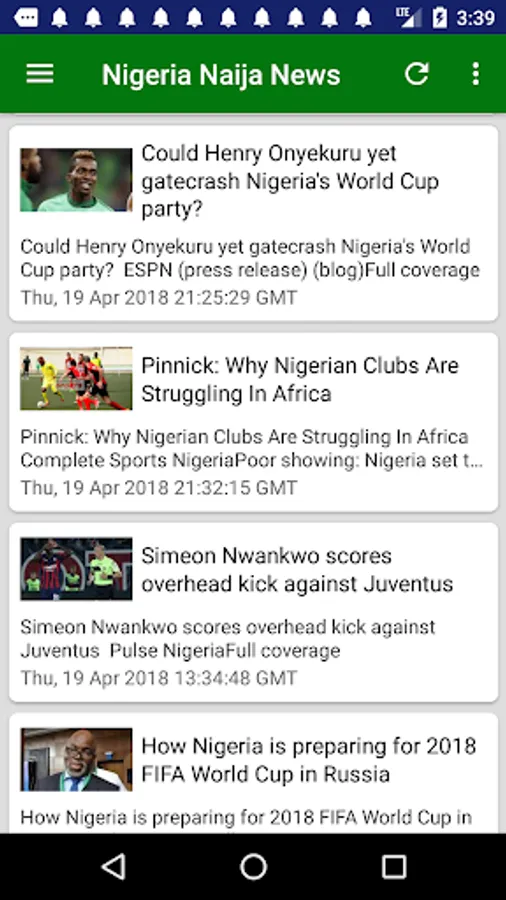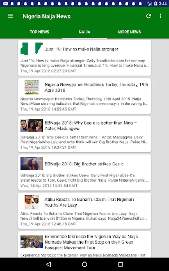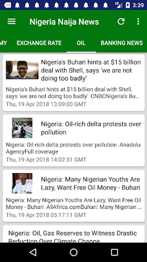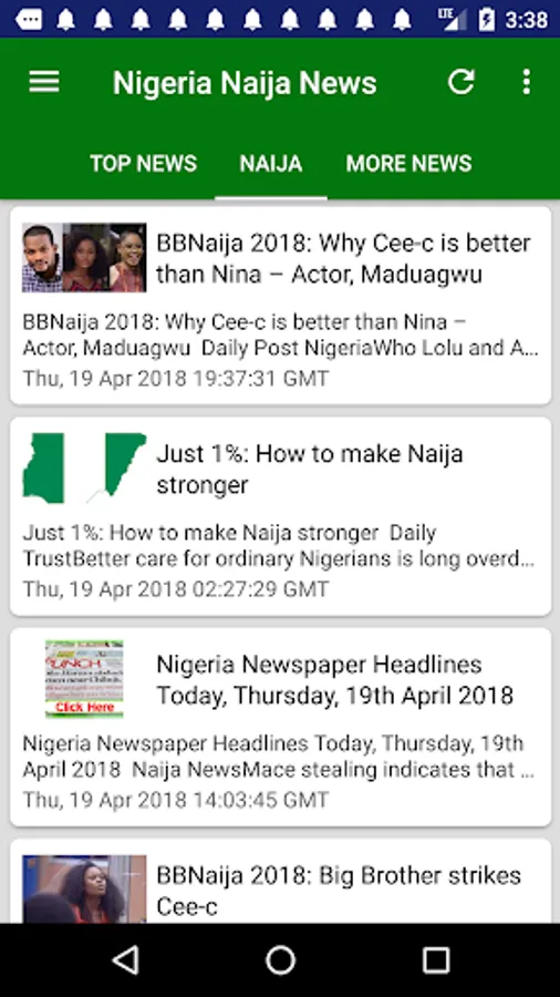 Latest & Breaking Nigeria News & Headlines Today at your fingertips, with notifications support (You can change notification preferences in the Settings section of your Android Device.) Get the latest Naija news including updates on sports, economy, education, banking, technology, entertainment and more. Individual news sections dedicated to top cities Lagos, Kano, Ibadan, Benin City, Port Harcourt and more will keep you informed about local happenings there.