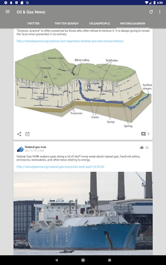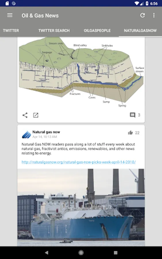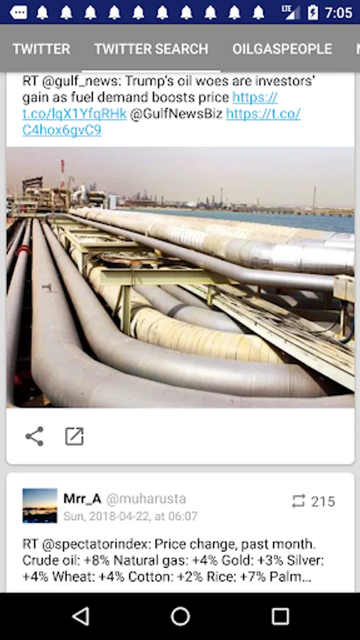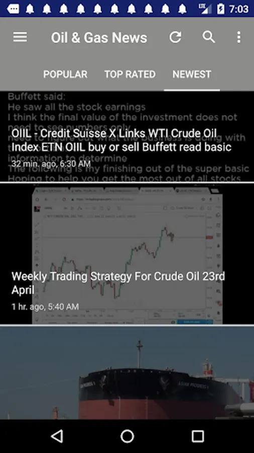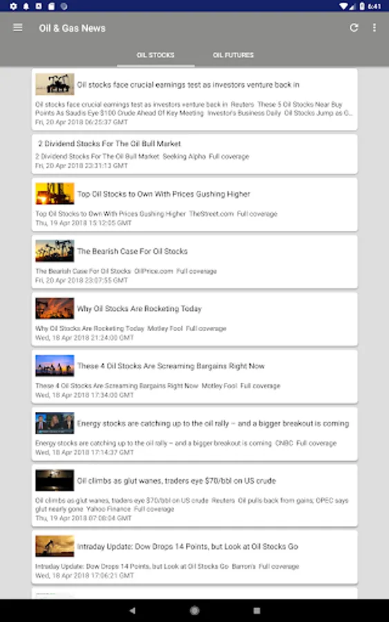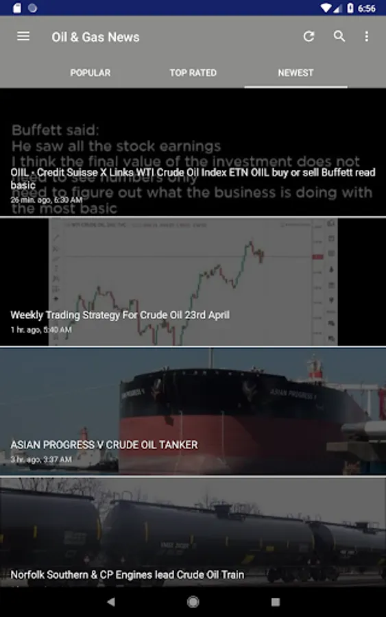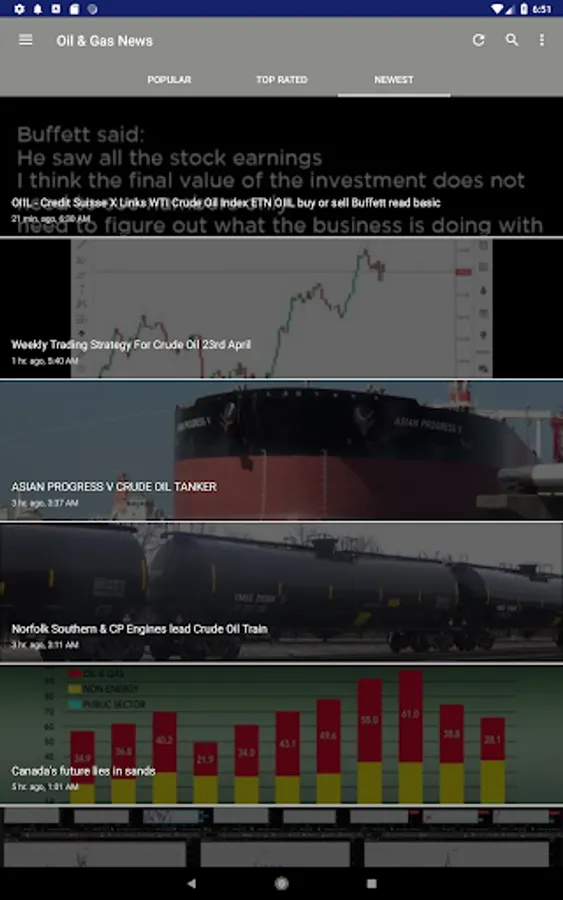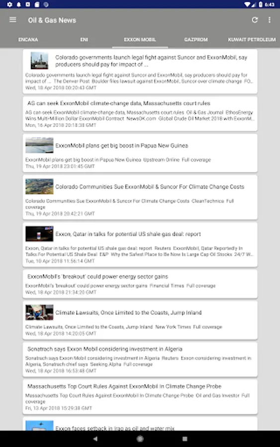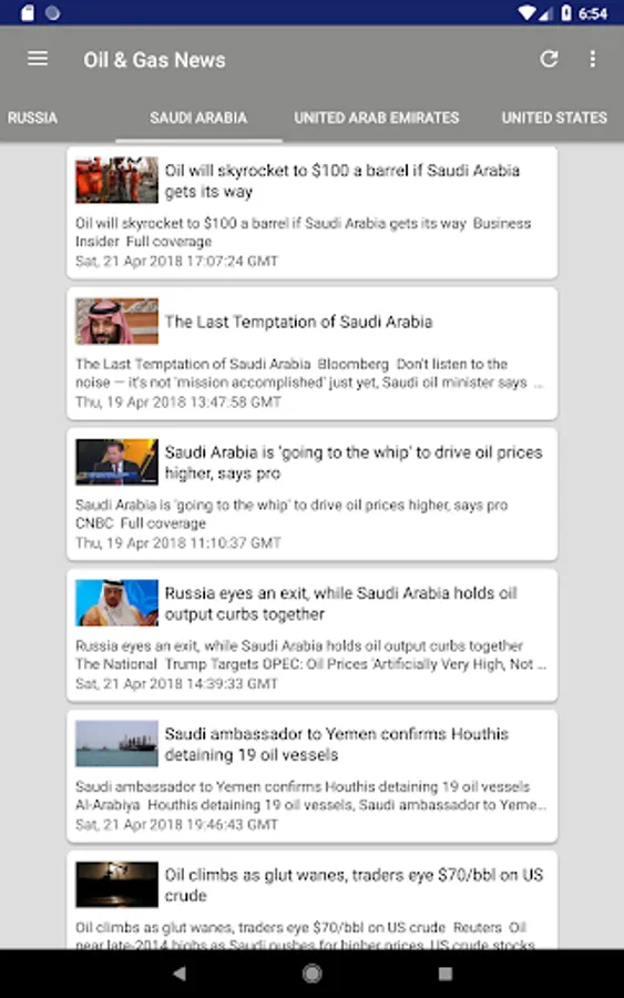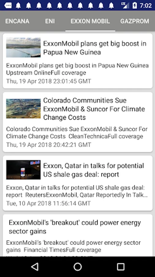 Latest Oil and Gas News Today at your fingertips, with notifications support (You can change notification preferences in the Settings section of your Android Device.) Get the latest crude oil news & natural gas news from the energy industry including updates on pricing, plus updates from OPEC. There are also individual news sections dedicated to top individual oil and gas producers such as Exxon Mobil, Royal Dutch Shell, BP, Valeryo Energy, ConocoPhillips, Chevron, PetroChina, Sinopec, Saudi Aramco, Total SA, Gazprom and more. Also learn with informative and educational videos, including gas-saving tips.