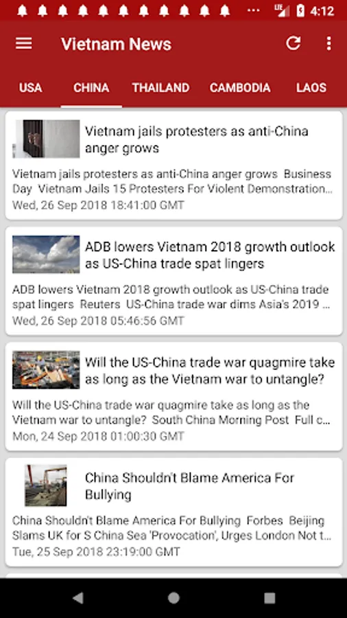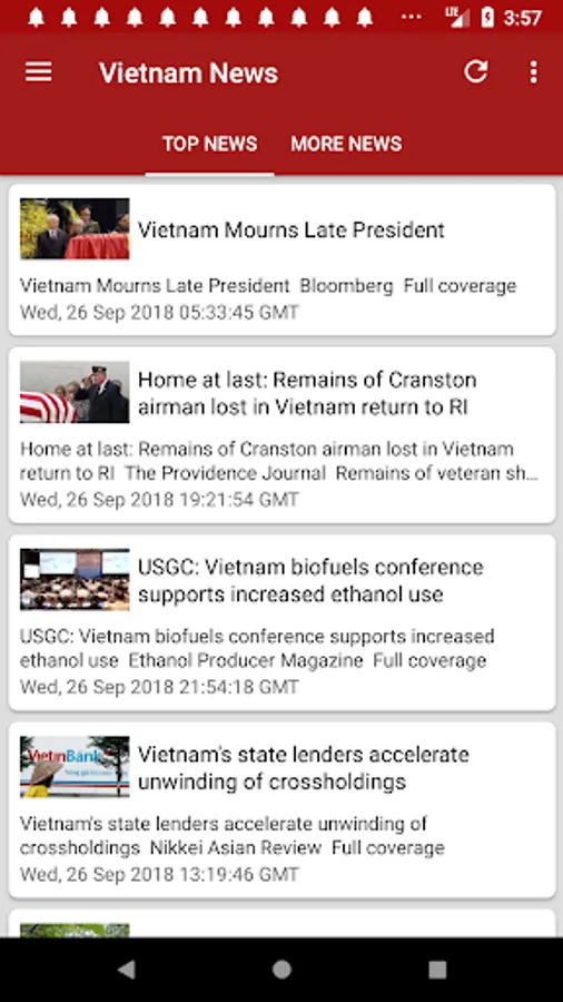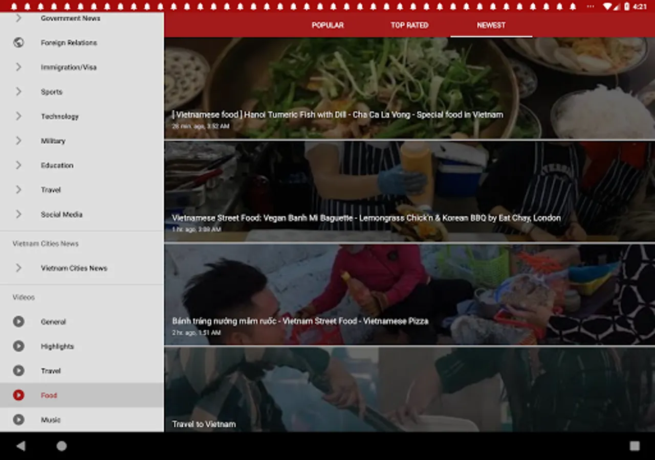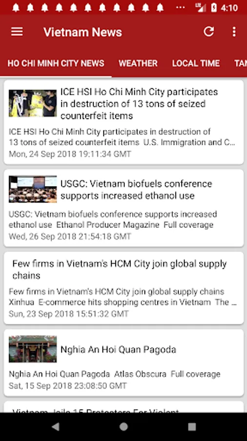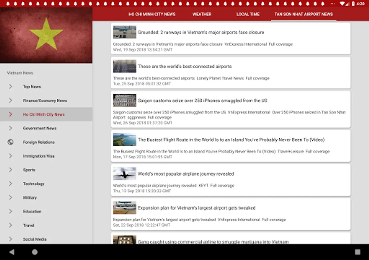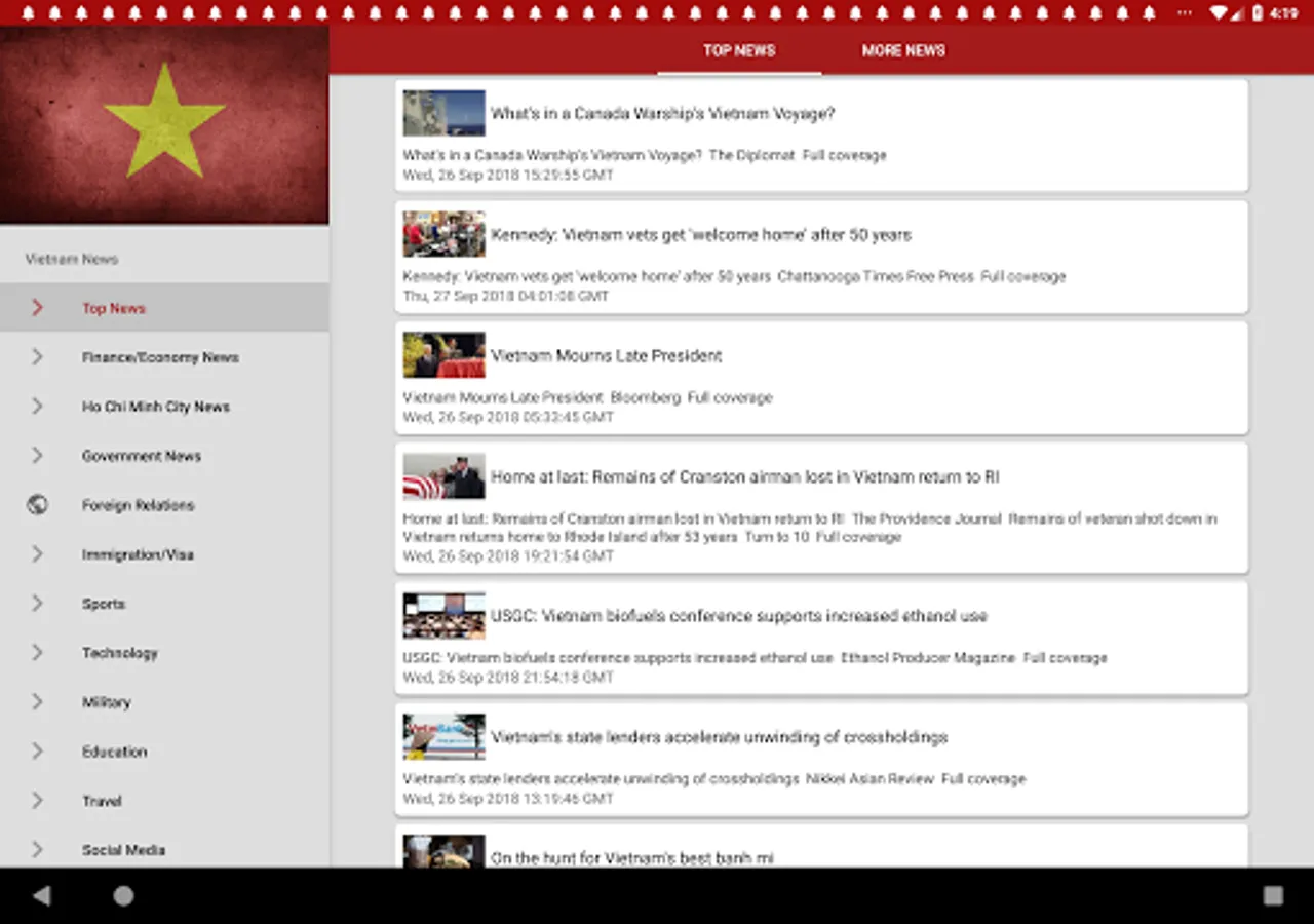 Breaking Vietnam News in English Today + Vietnamese Radio at your fingertips, with notifications support (You can change notification preferences in the Settings section of your Android Device)! Get the latest News from Vietnam including updates on its economy, relations with China, banking, travel/visa, technology and much more. Individual news sections dedicated to top Vietnamese cities Ho Chi Minh City, Hanoi, Haiphong, Nha Trang, Hue and others will keep you informed about local happenings there. There is also a business section to keep you up to date Vietnamese stock market & banking.