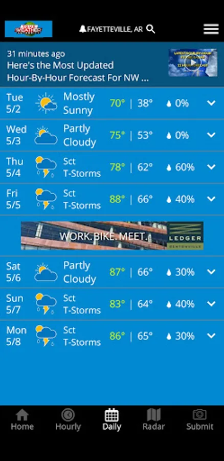 Covering Fayetteville weather along with Springdale, Rogers and Bentonville, we are Northwest Arkansas' most comprehensive weather app. The combined resources of KNWA and Fox 24, gives you the largest and most experienced weather team in Northwest Arkansas.