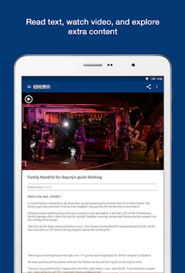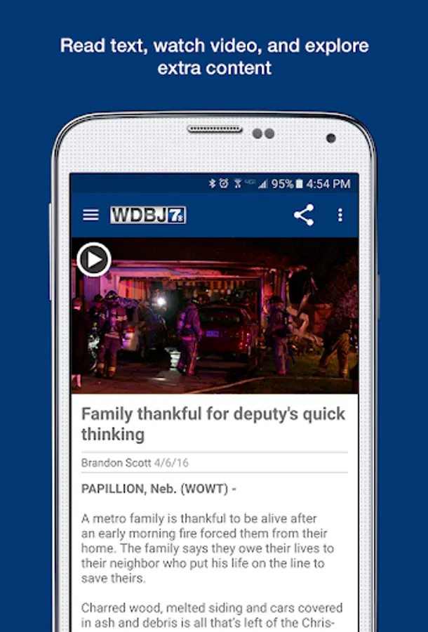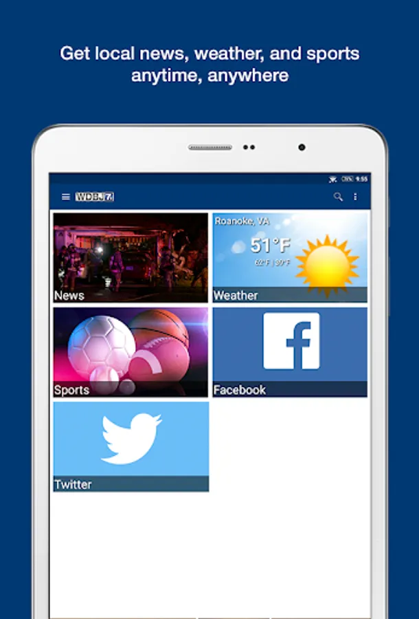 Catch the latest news, sports and weather wherever you go with the WDBJ / WDBJ7 Local News application. These apps take the best features from WDBJ7 newscasts at www.wdbj7.com and the forecasting power of our First Alert meteorologists and roll them into an experience that is a must on your mobile device. It makes viewing and sharing news and weather easy.