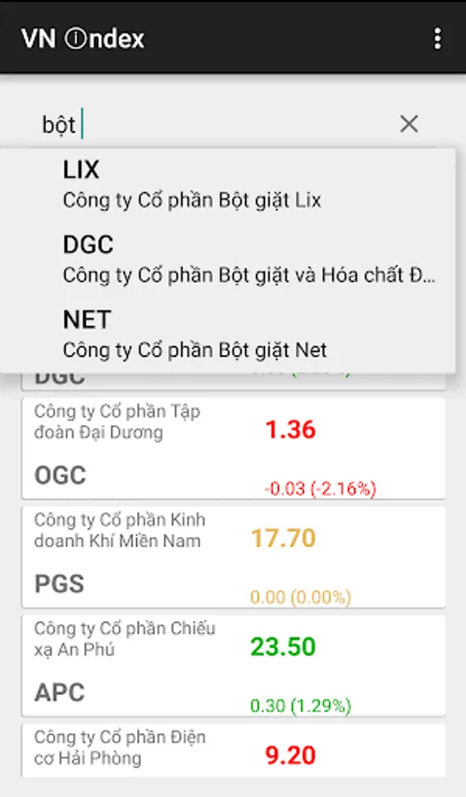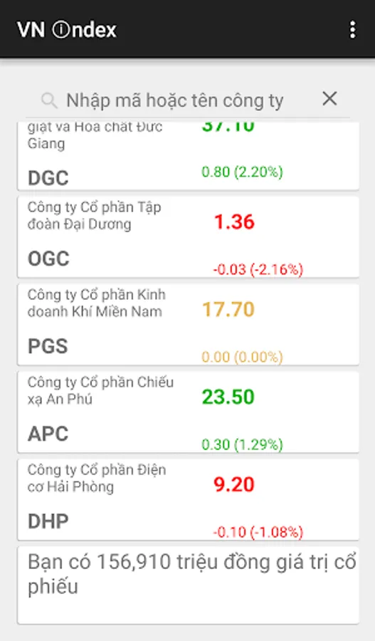 - Tìm kiếm theo mã chứng khoán hoặc tên công ty niêm yết dễ dàng.
