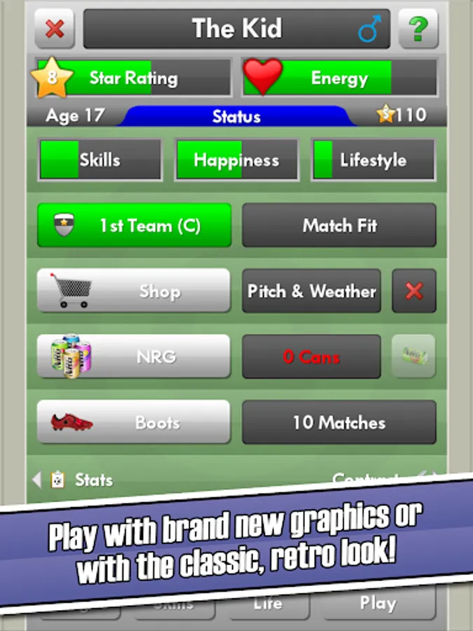 You are the star of the show as you launch your soccer career as a fragile 16 year old in this BAFTA award-winning, App Store #1 sports RPG from New Star Games.