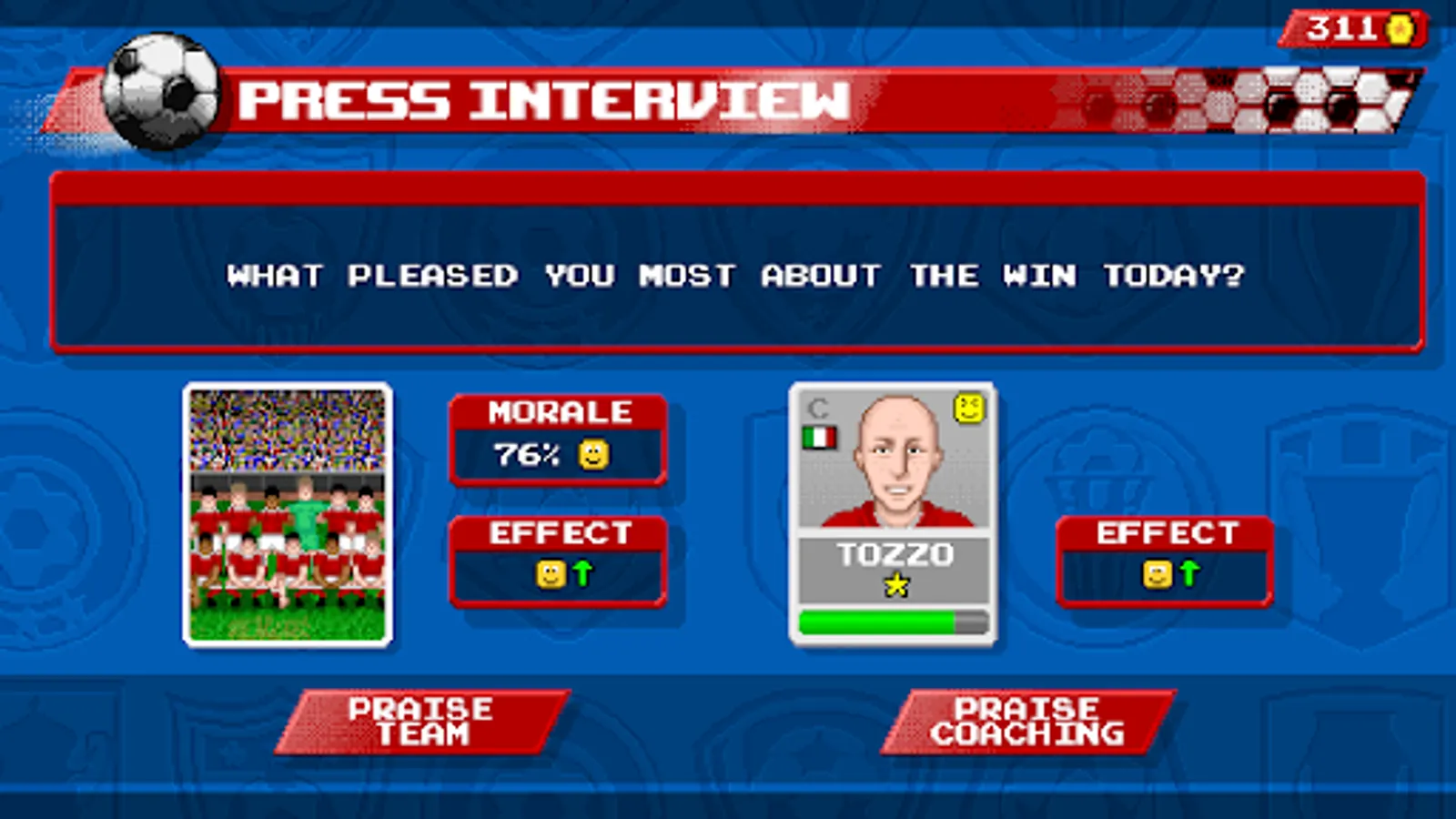With graphics inspired by the most beloved football games of 16-bit era and the accuracy of modern touchscreen controls, you'll be slotting away goal after goal with pixel-perfect precision. Choose a team from the world's favourite leagues and recruit the superstars, professionals and hotheads who will lead you to victory - then take full control on the pitch and make every touch count!