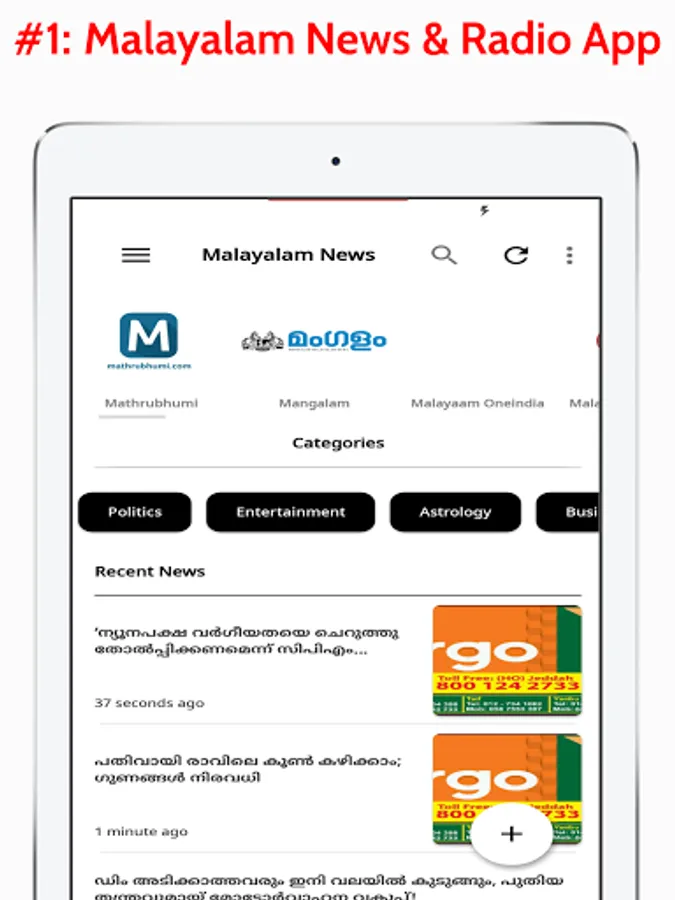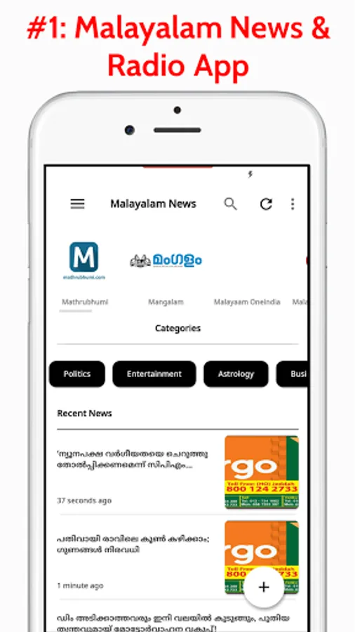Malayalam News App Includes