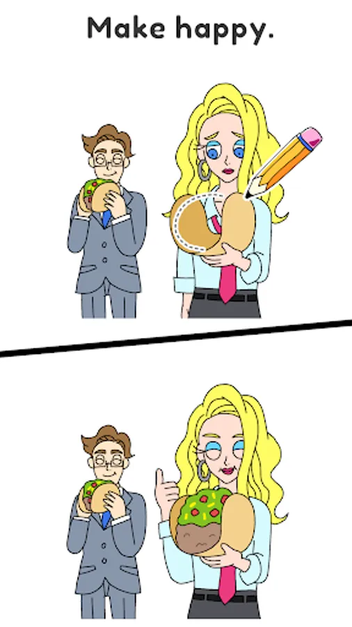 To pass this level, you have to discover why they are in trouble or in a bad mood. Think of something they will be happy with and write it in your own hands.