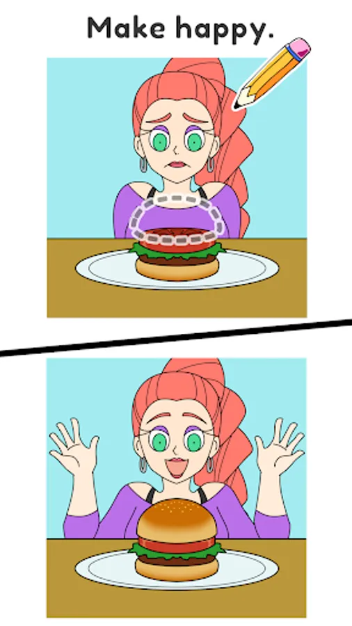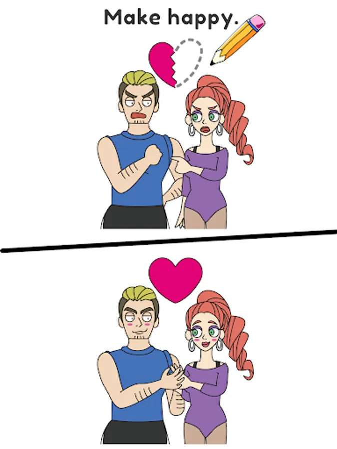 To pass this level, you have to discover why they are in trouble or in a bad mood. Think of something they will be happy with and write it in your own hands.