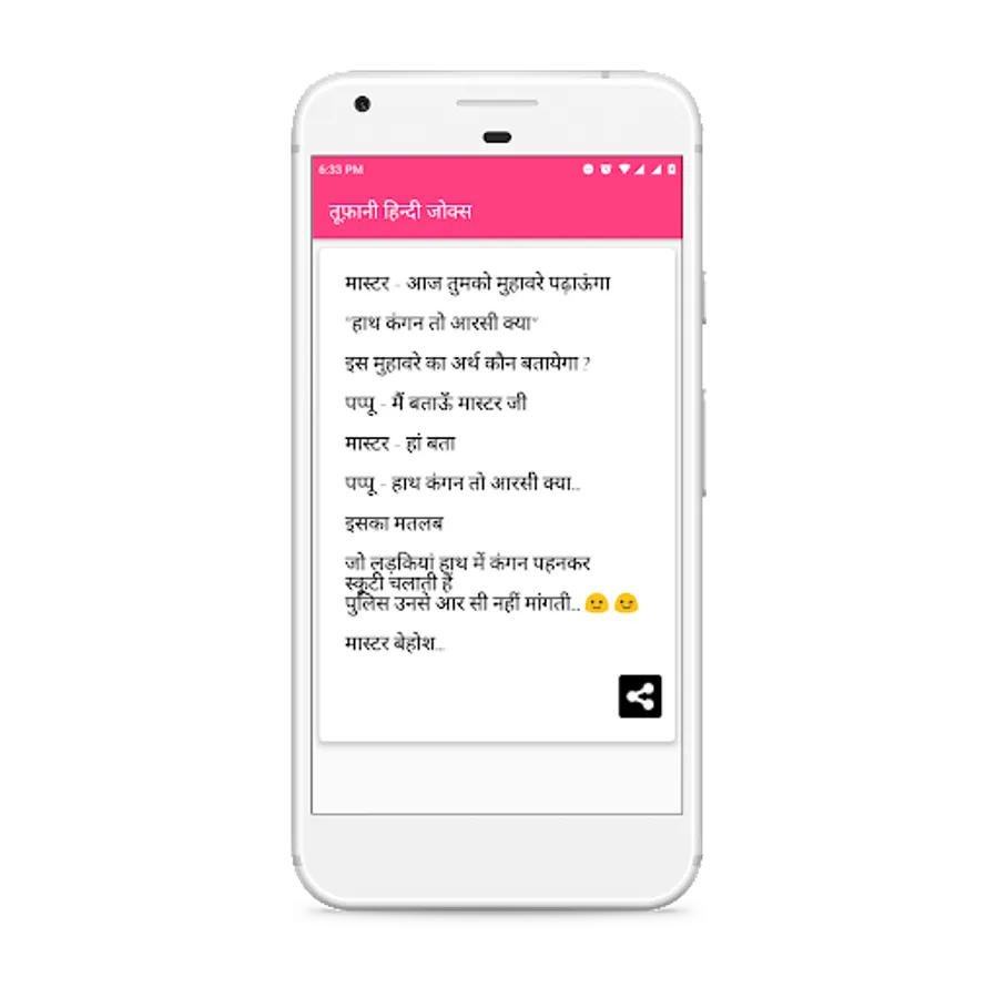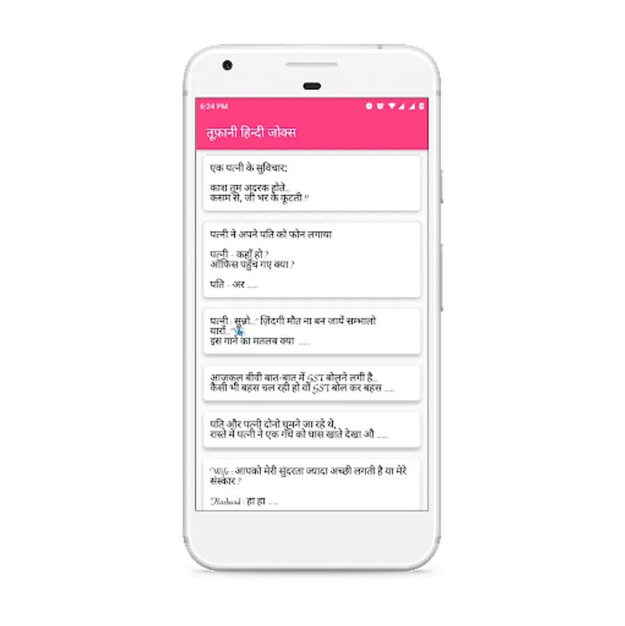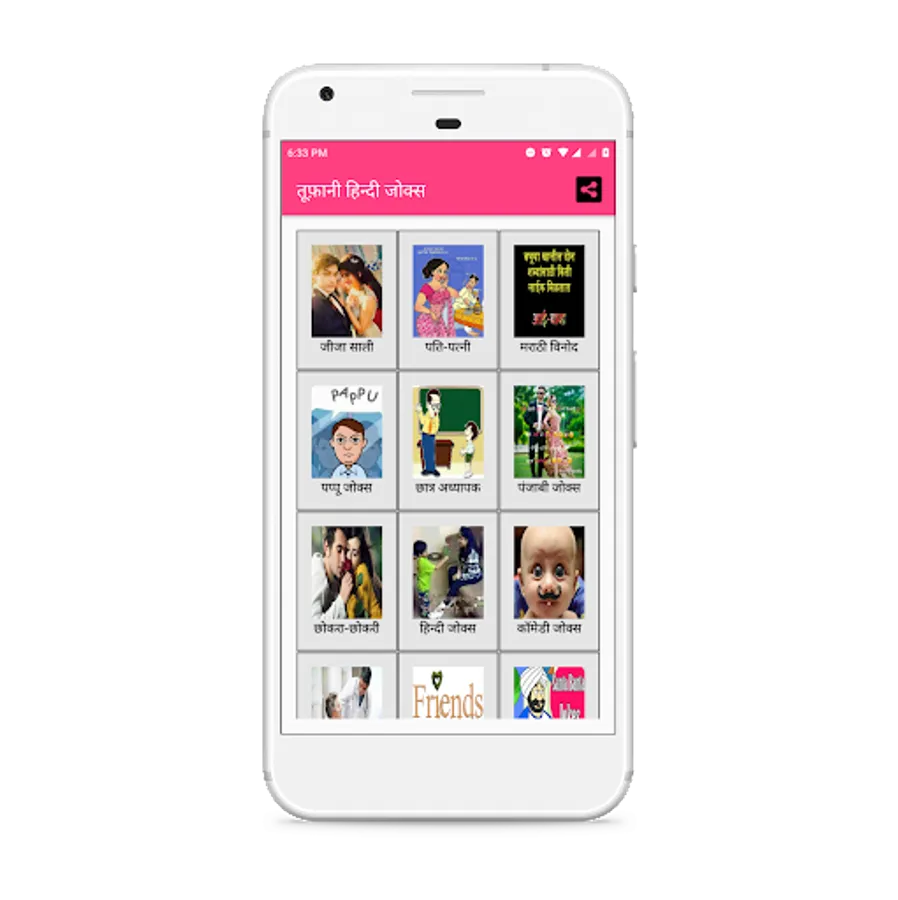 Funny Hindi Jokes is collection of multiple categories of jokes. contains jokes for Jija sali jokes, Husband-wife jokes, Marathi vinod, Pappu jokes, Teacher-student jokes, Punjabi jokes, Chhokra-chhokri jokes, Hindi jokes, Comedy jokes, Doctor patient jokes, Friends jokes, Santa-banta jokes.