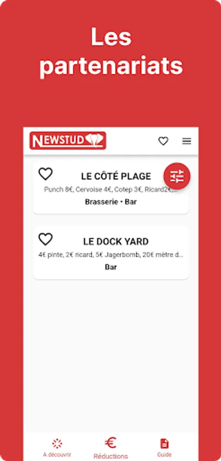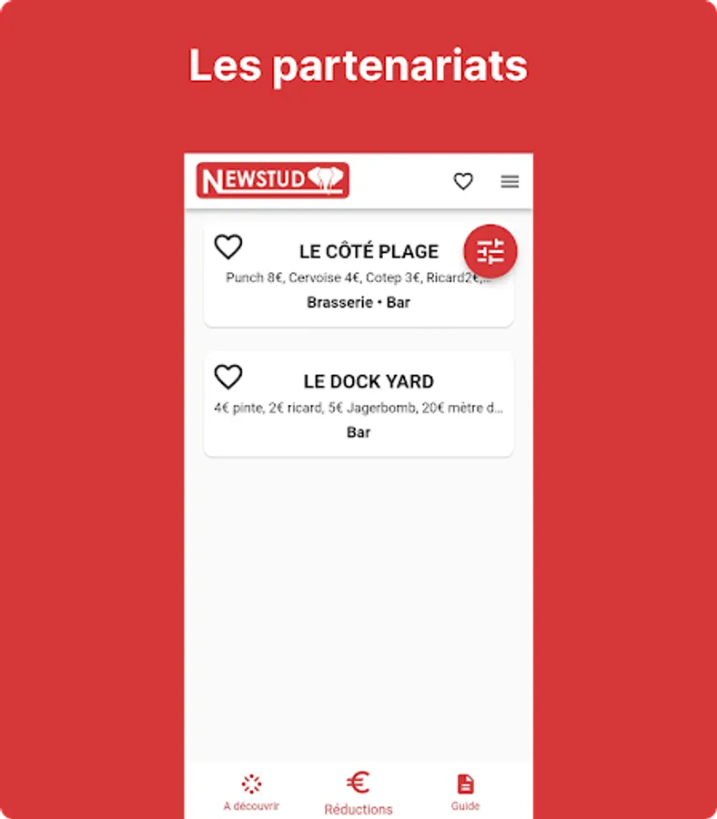 Partnerships! Thanks to our partnerships, the application will offer discounts in certain bars, restaurants and cultural venues.