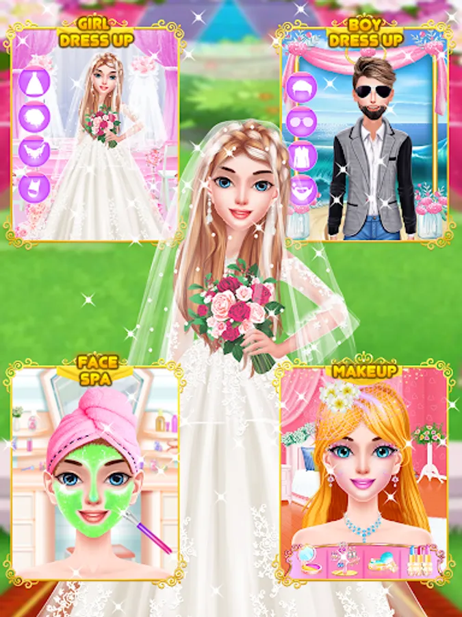 All our dressup games for girls are completely free and offer no in-app purchases. 250+ items will make for an enormous number of unique combinations in this super model game! Dozens of classy dresses, shoes, wedding veils, handbags, bouquets and jewelry will let young fashionistas experiment with different bridal outfits for the top models and develop their artistic taste and fashion designer skills.