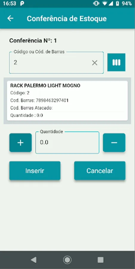 Mobile version of the Inventory Conference module of the Siserp desktop software.