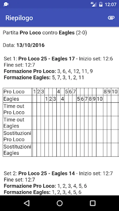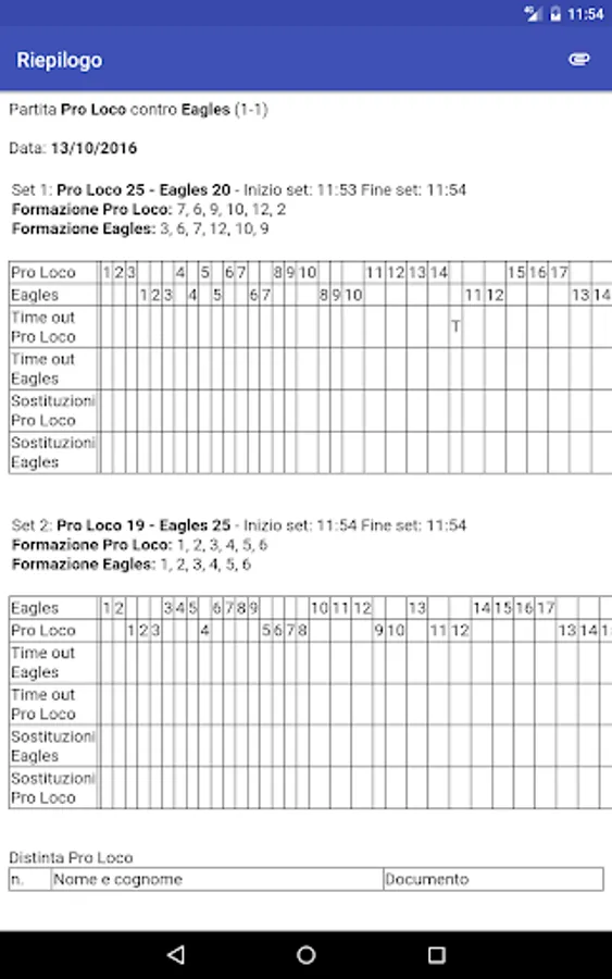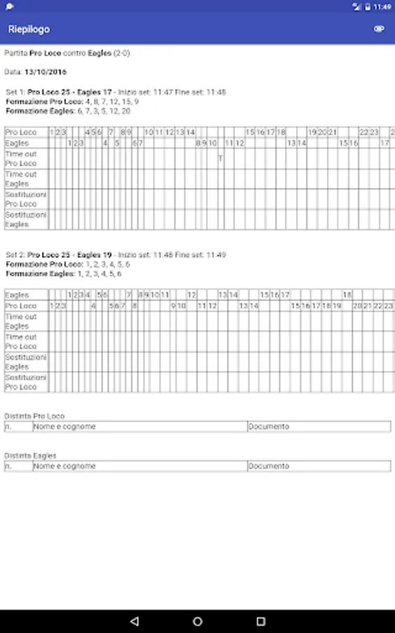 - View the full report of the match points with sequence, time out, replacements etc .;