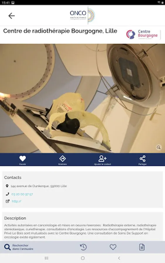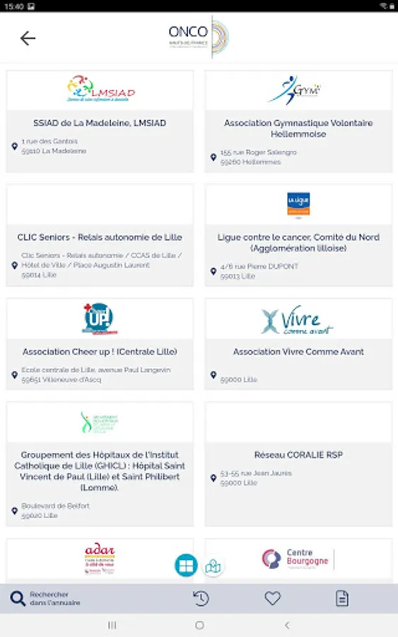 The ONCO Hauts-de-France application will allow you to access the adult and child resource directories and much other information. Thanks to the directory of cancerology resources in the region, the general public and professionals will be able to quickly access detailed information on all the regional support resources for patients with cancer and their families, close to home. them.