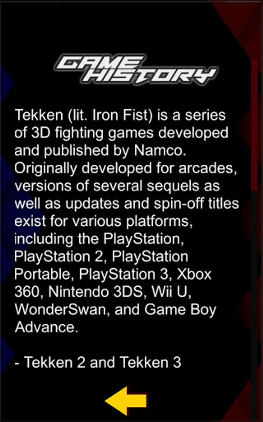 This guide that is a fan made tips and tricks app is a guide for the popular Tekken fighting game series that is famous combat games series. Find topics on stages, moves, characters, fighters, Tekken 7, Tekken 6, Tekken Hybrid, Tekken Revolution and more.