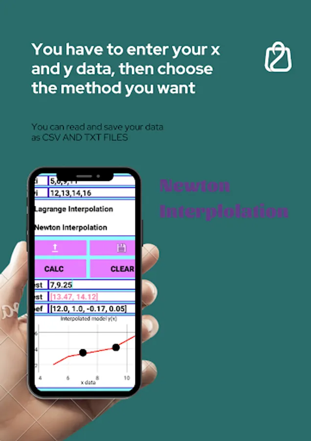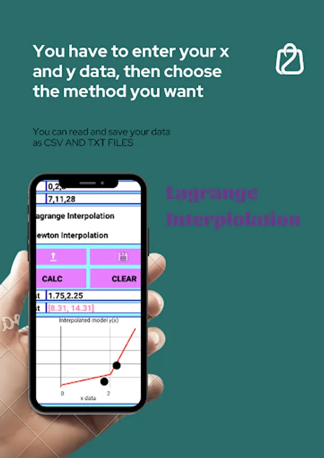 This free app allows users to interpolate data with two efficient and power full methods. The Lagrange interpolating polynomial is a tool that helps us construct a polynomial that goes through any desired set of points.