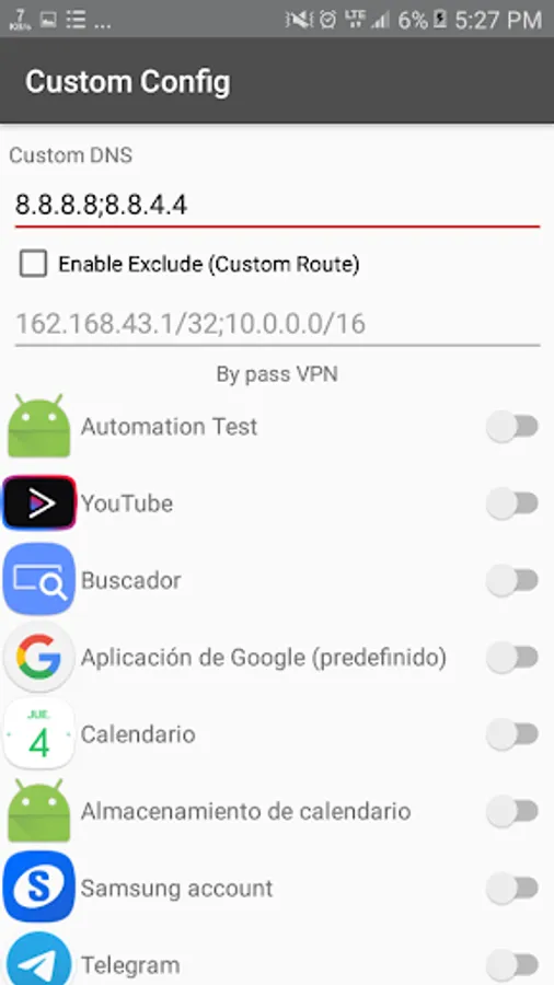 Tu2TAP makes your Socks5 server can route all the traffic of your cell phone, likewise you can forward the UDP using in your server badvpn that will allow this, and other functionalities such as the exclusion of applications, configure the DNS. We will soon add more options.