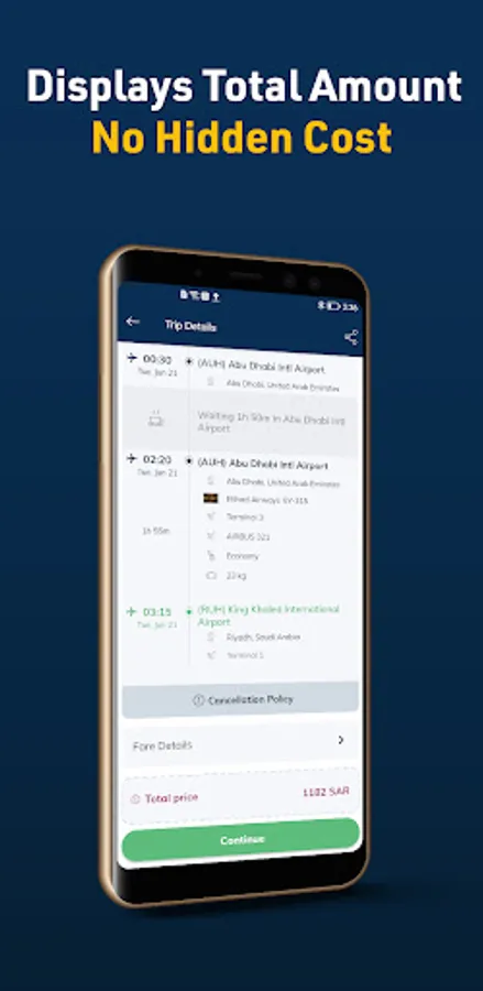 Chutti App for flight tickets displays the total amount of your ticket with no surprising or hidden fees.