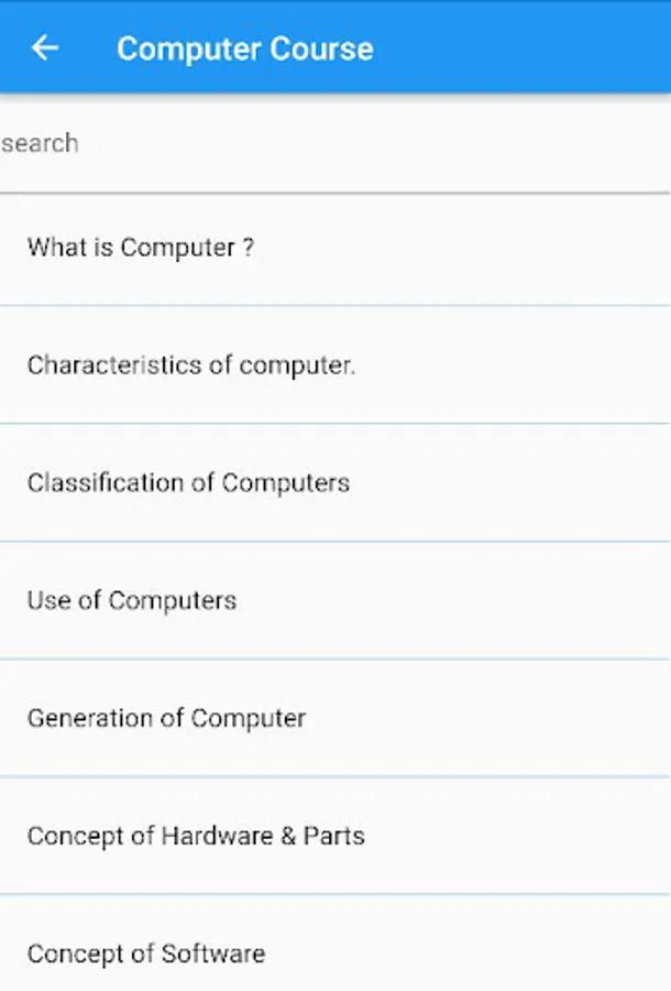 This is computer course application useful for beginners to intermediate. This application is for computer notes for school, shortcut keys are available here. In this application you can easily find software, hardware, network shortcut and quiz related knowledge. Learn computer from home or any place using your mobile phone.