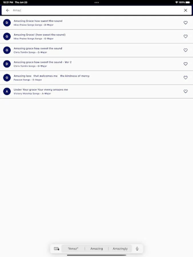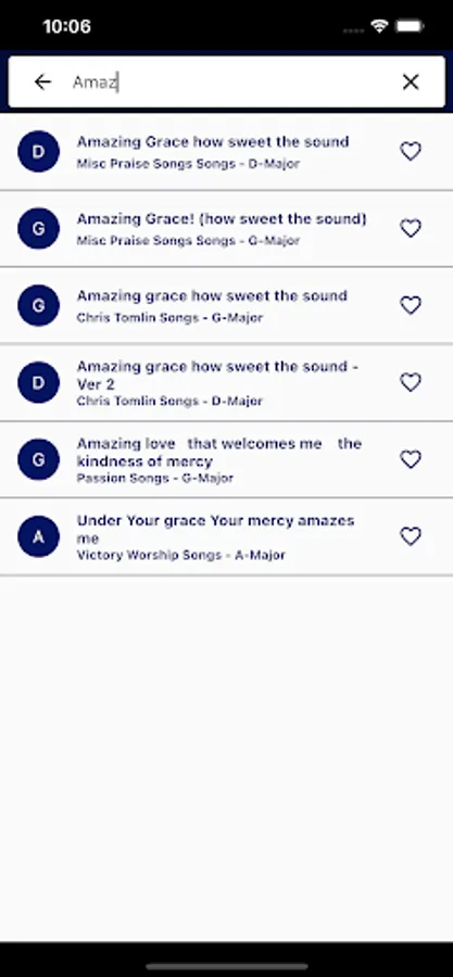 1. Now you can search the whole song and its easy to search with just any part of the song. Just type "how sweet" will list Amazing Grace song.