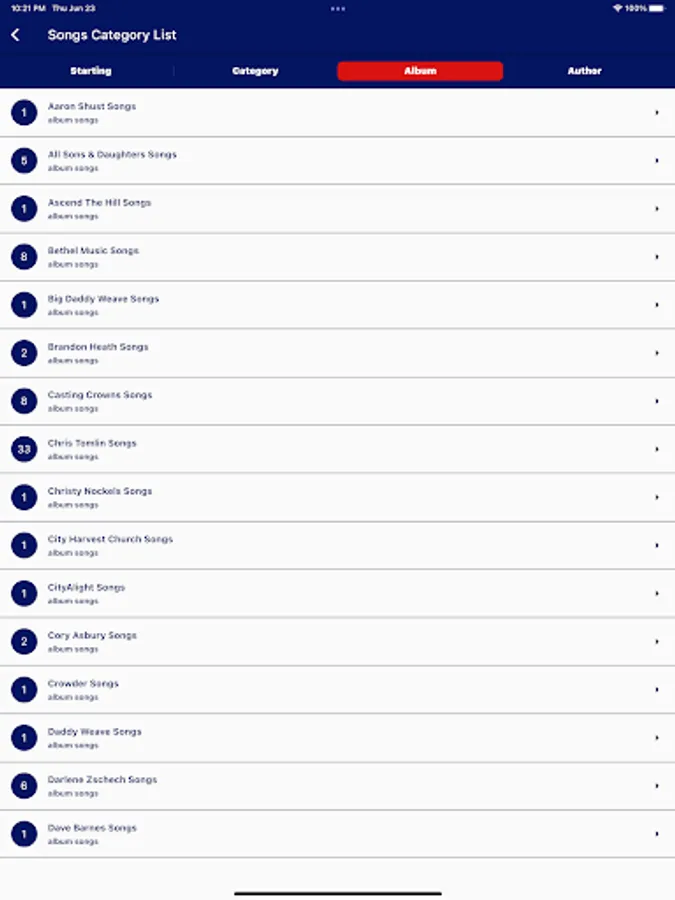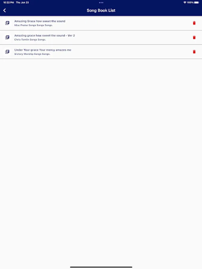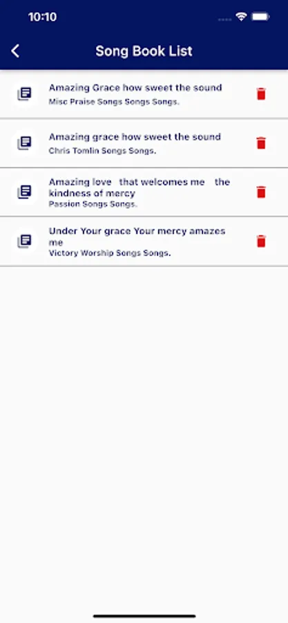 Books Section - Add your own song books with different songs.