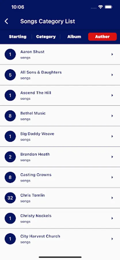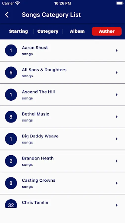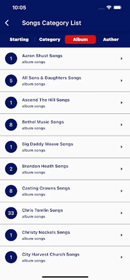 3. In song list the left side show the chord for each song.