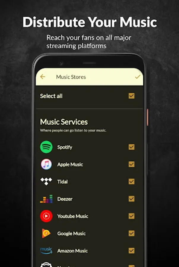 We are Global, we distribute to Akazoo, Alibaba Music, Amazon Music, Anghami, Apple Music, AWA, Deezer, Facebook, Google Play, iHeartRadio, iTunes, JamboTunes, Napster, Netease, Pandora, Napster, Spotify, Tencent, Tidal, UMA, Youtube Music among others.