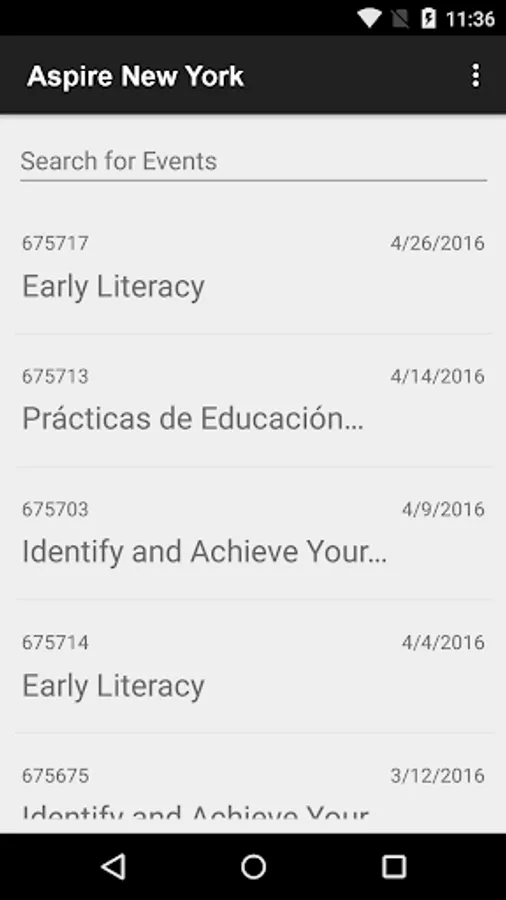 Early Childhood Trainers: Use the app to view a list of the training events you have scheduled in The Aspire Registry. Take attendance directly in the app and attendees will instantly have your event added to their Aspire profile training tab!