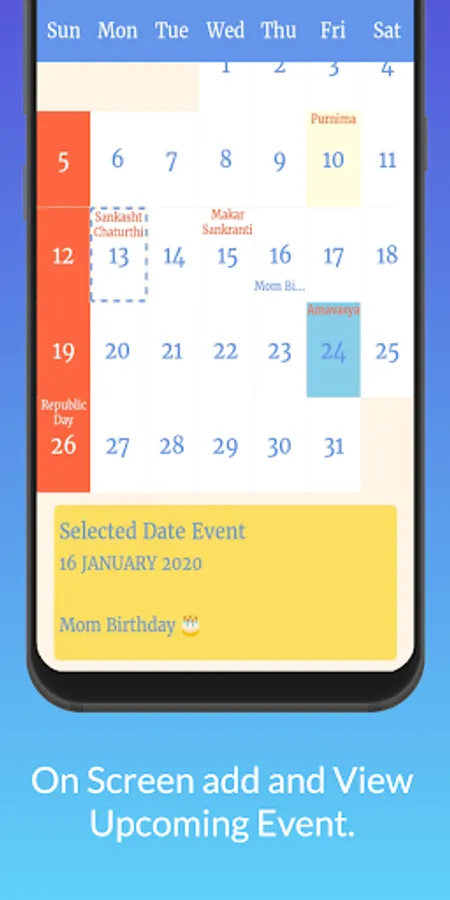We have provided feature to add your events like birthday, meeting, Anniversary, Travel or any type of event and can check daily. This app is useful for daily use.