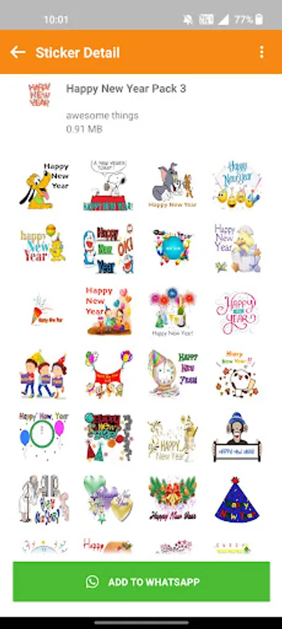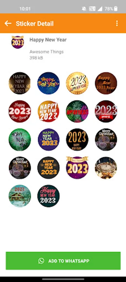 - Open the app select "Happy New Year sticker" pack select or choose the category
