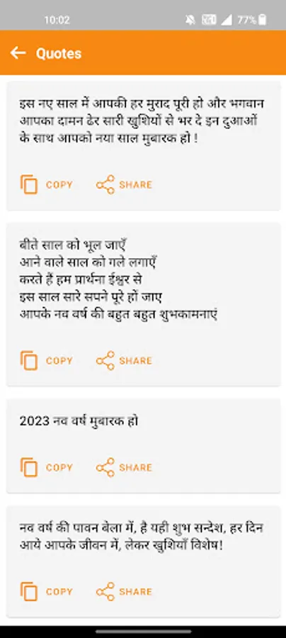 - Click on the Quotes button to see a list of new year quotes available, then copy or download any quotes you like and share it