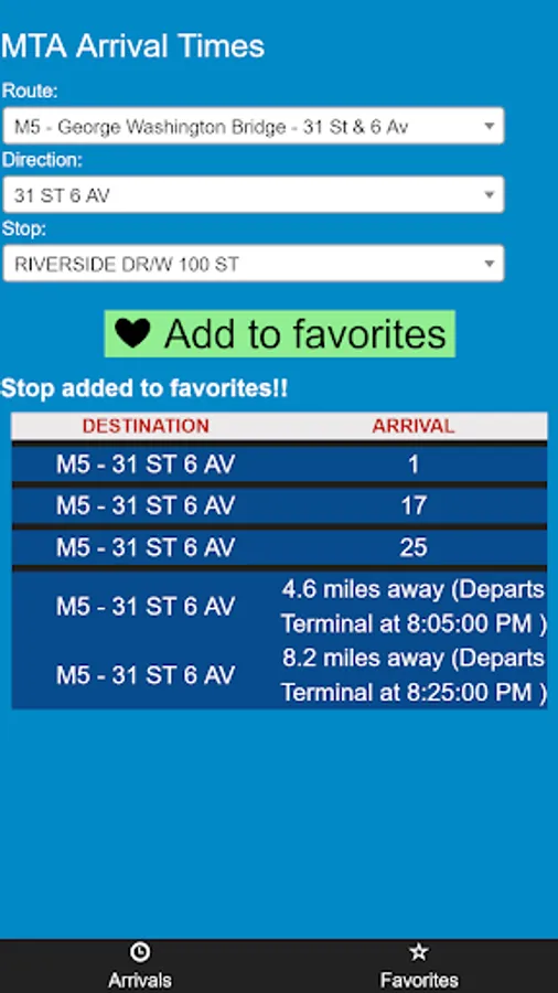 Lightweight bus tracker for nextbus of the New York City Region Transportation MTA Bus Time and metro.