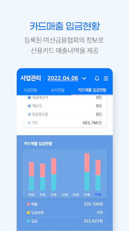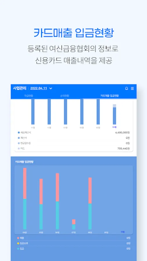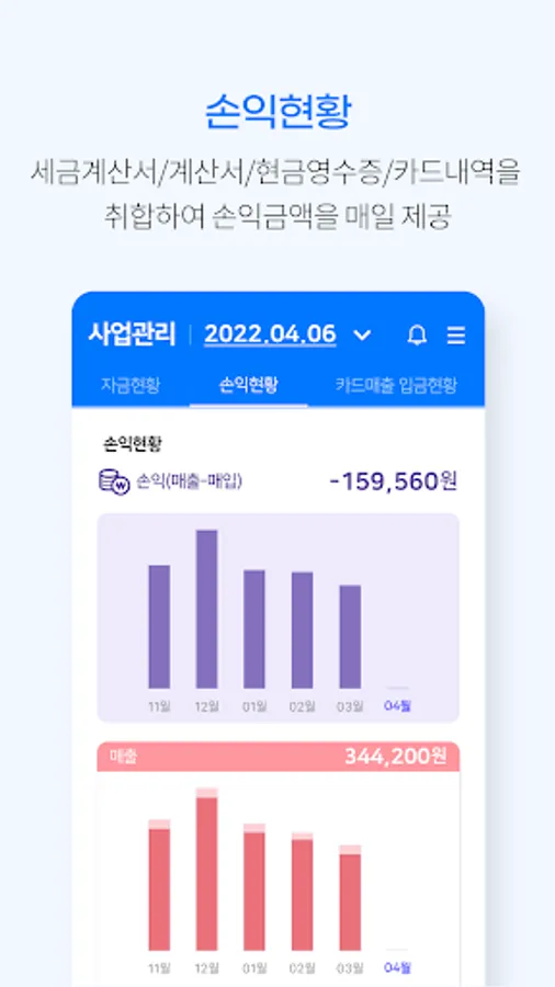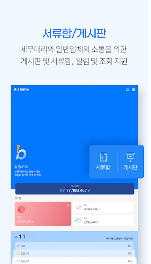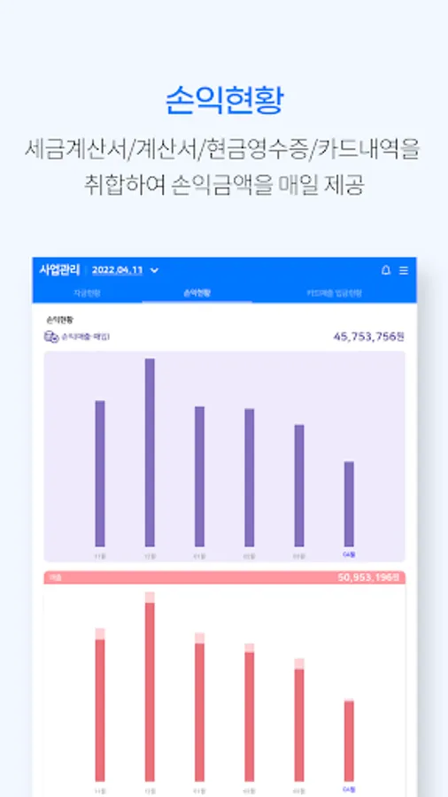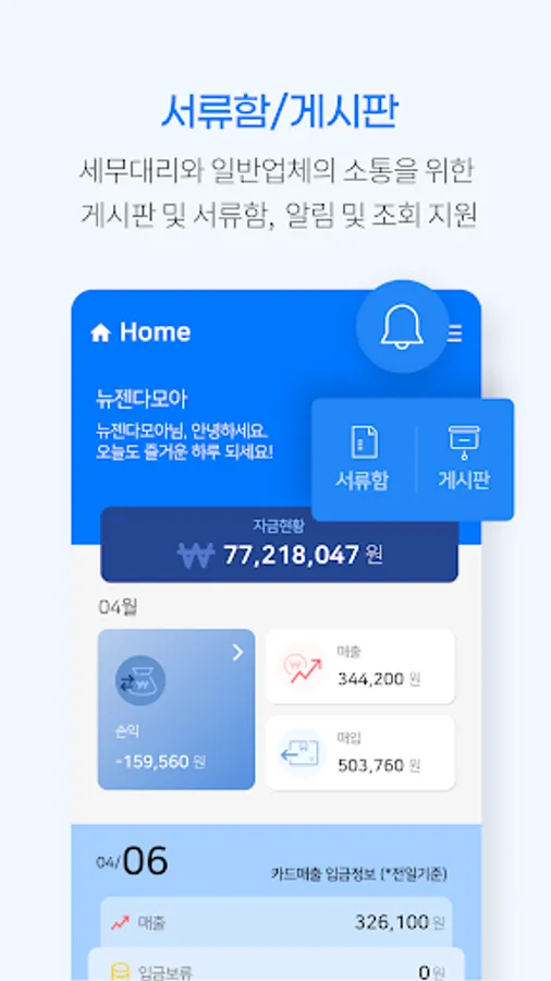 - Supports users to easily check business information and manage business by analyzing and providing the evidence data automatically collected by Bizbooks 2.0 such as home tax, bank, credit card, etc.