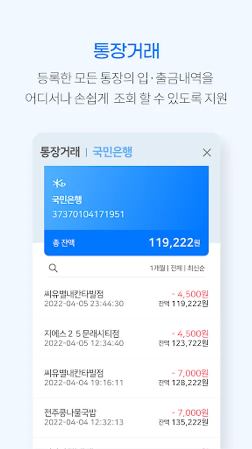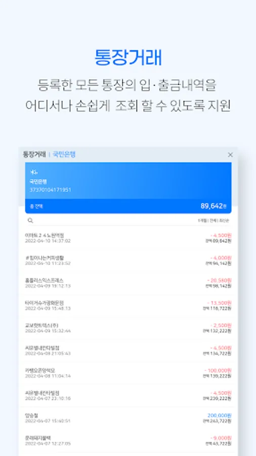 - Support to easily inquire the deposit and withdrawal details of all registered bankbooks from anywhere
