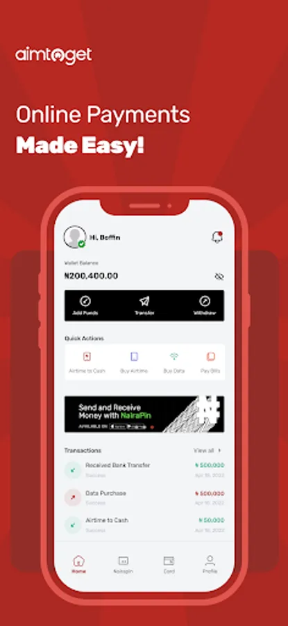 Your Aimtoget wallet is secured with a 4-digit transaction Pin to avoid unauthorised transactions from your wallet.